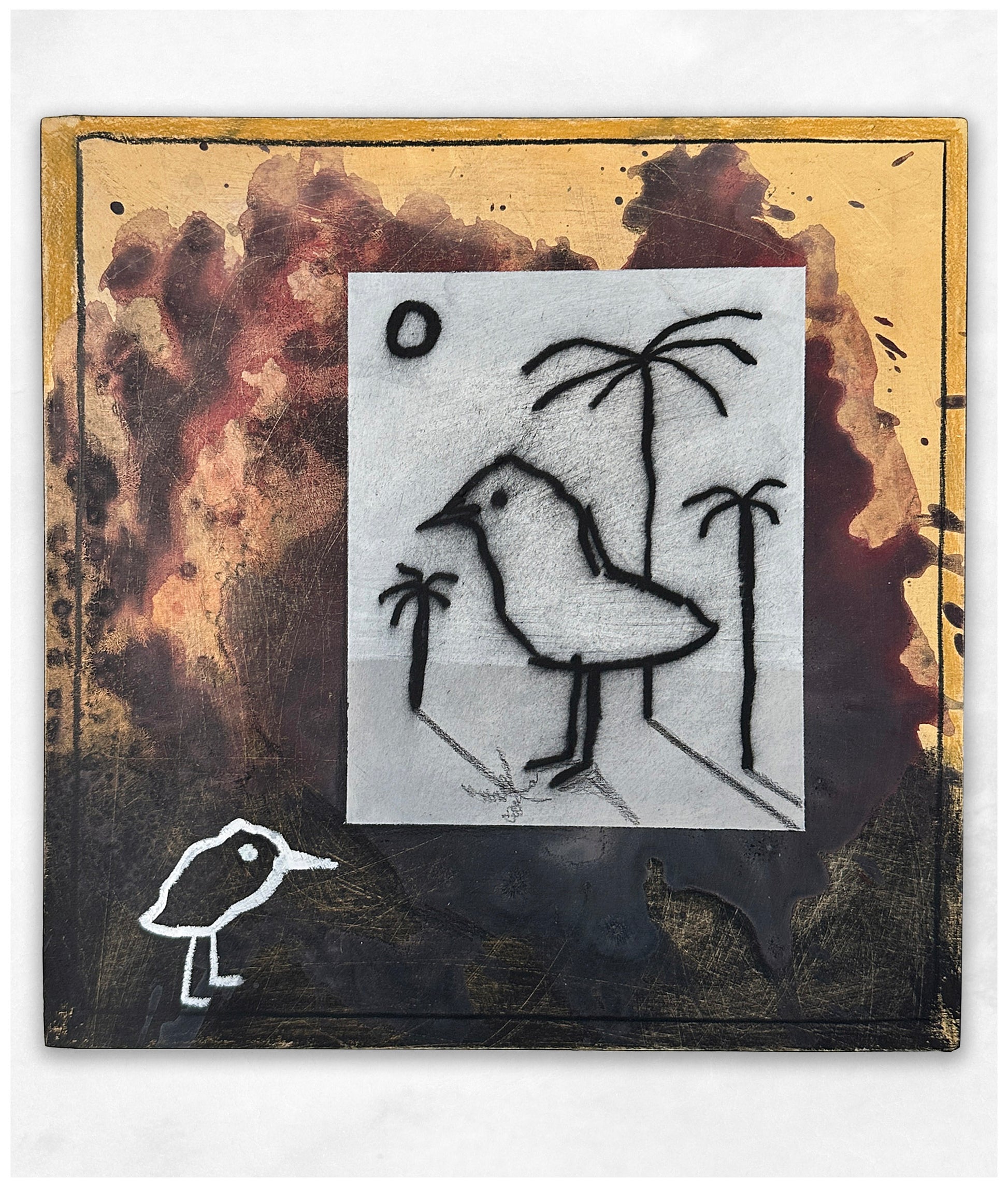 Acrylic, oil pastel, pencil.