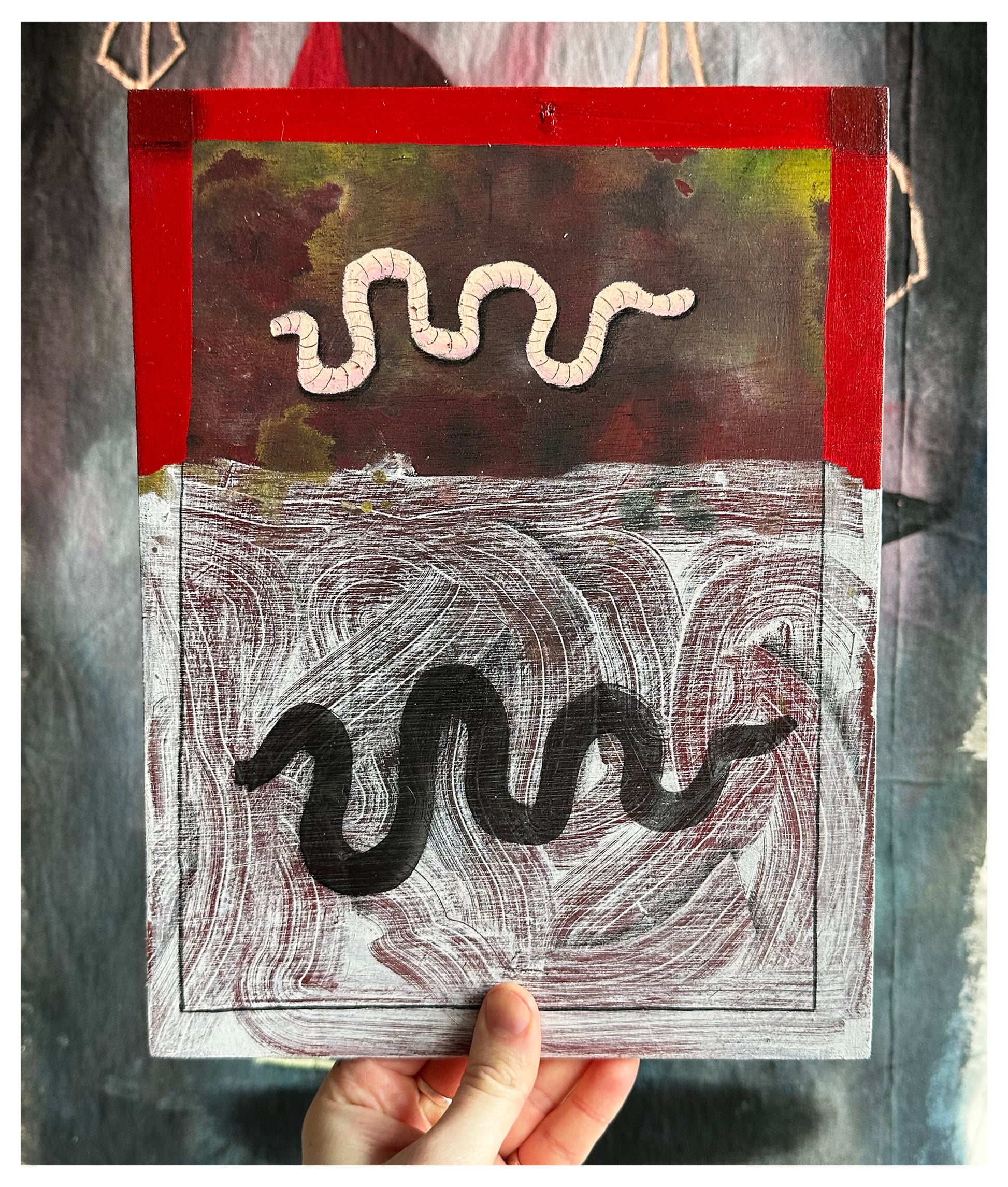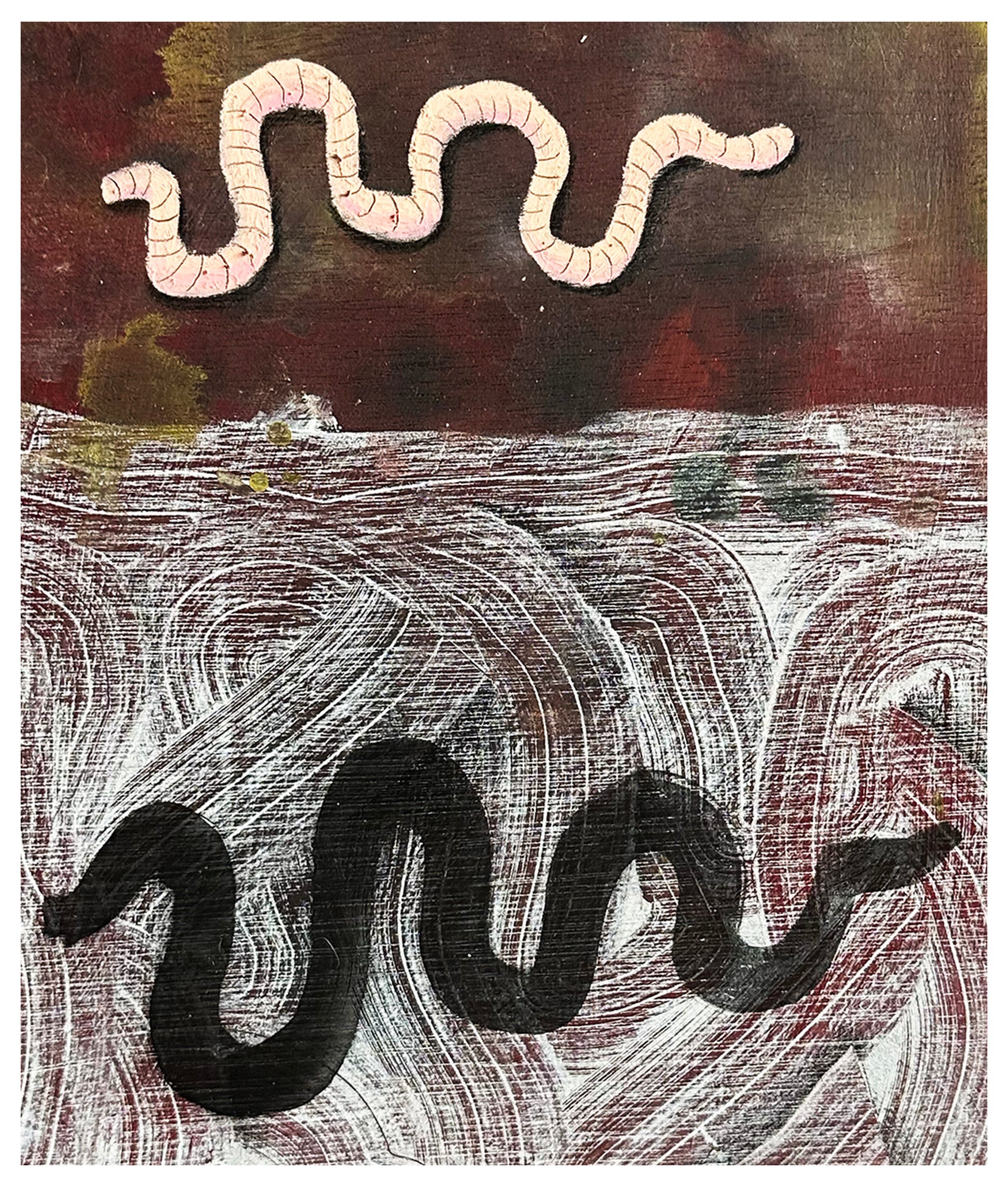 Acrylic, pencil, oil pastel