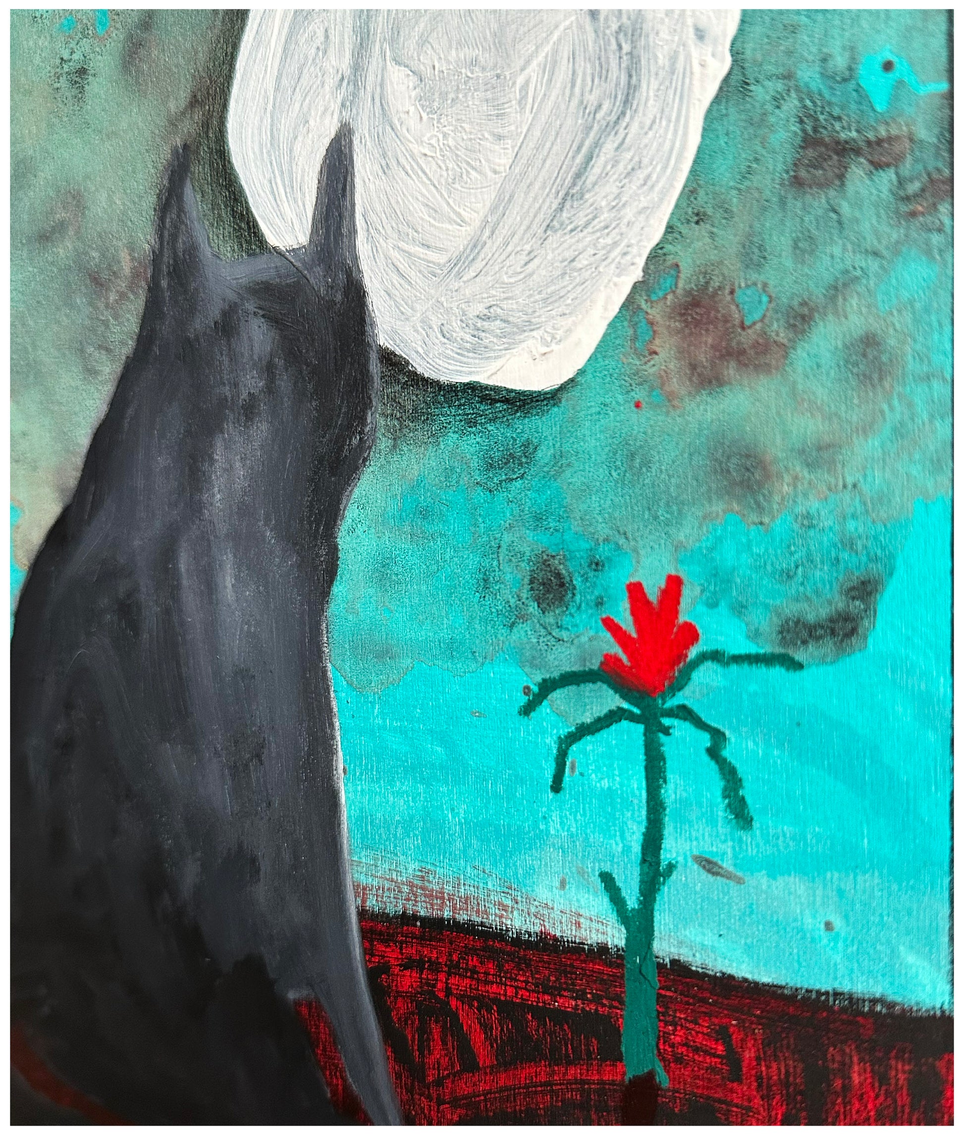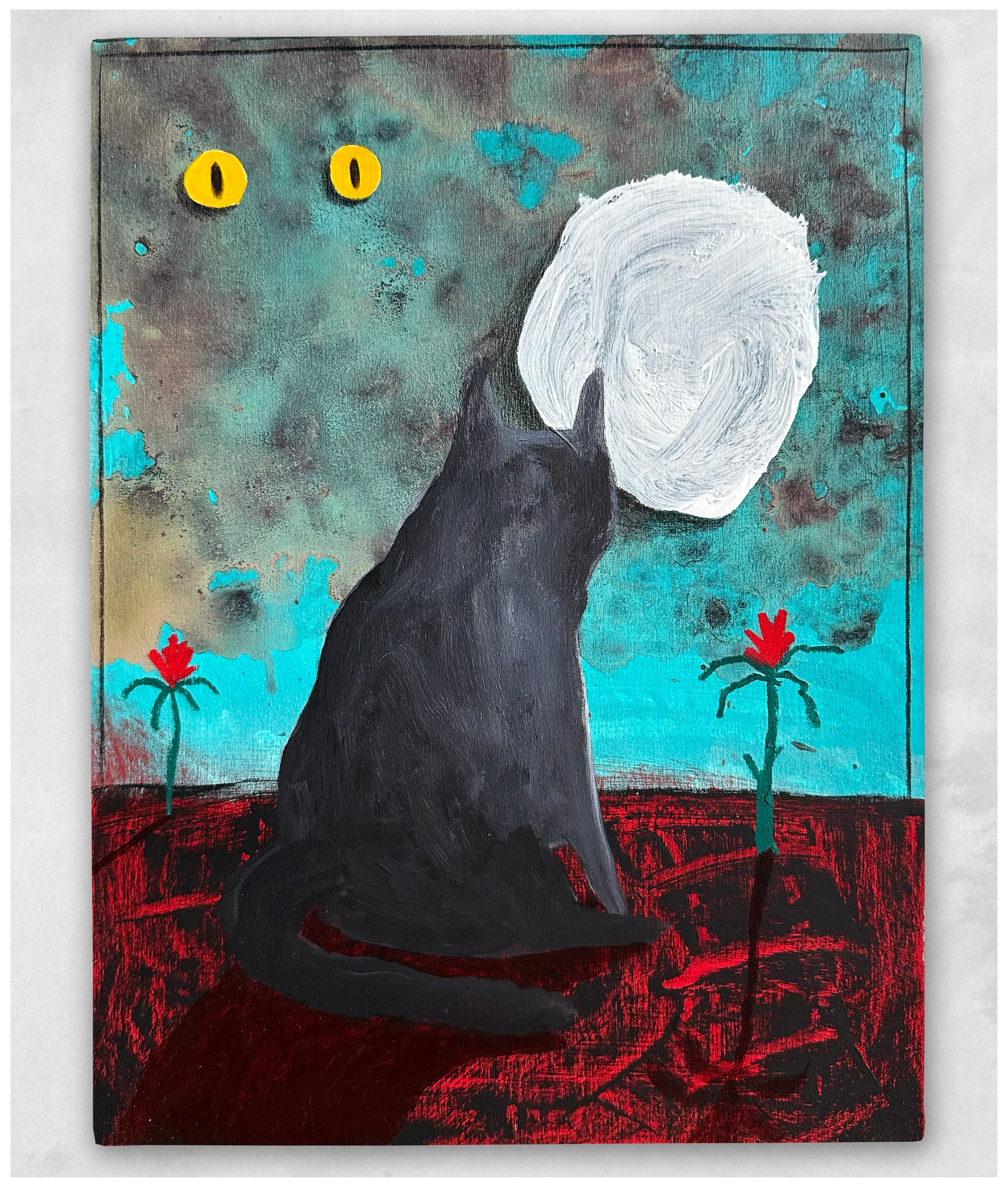 A Bagheera Stares Into The Moon, The Sky Stares Back. (flowers bloom)