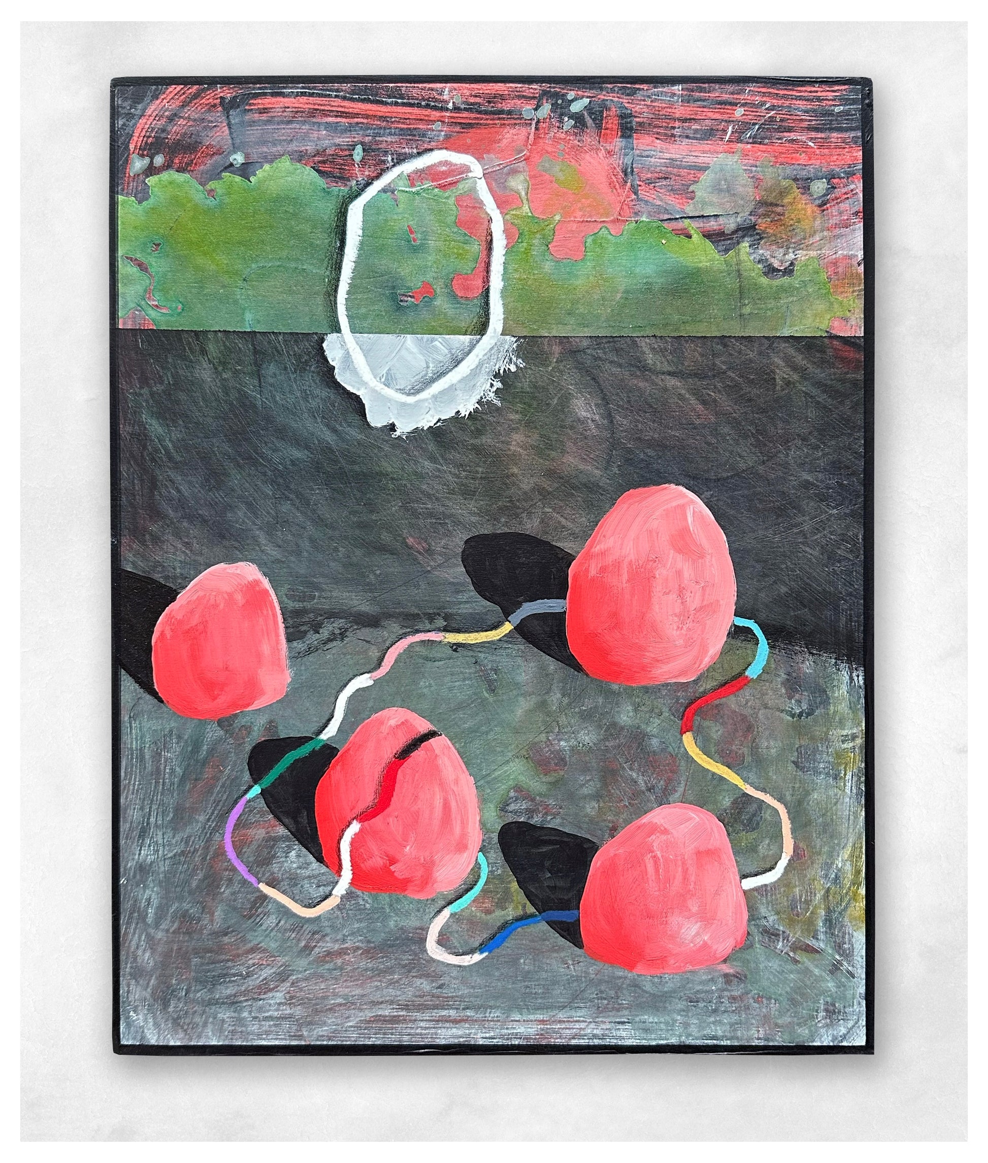 Acrylic, oil pastel, pencil, posca.