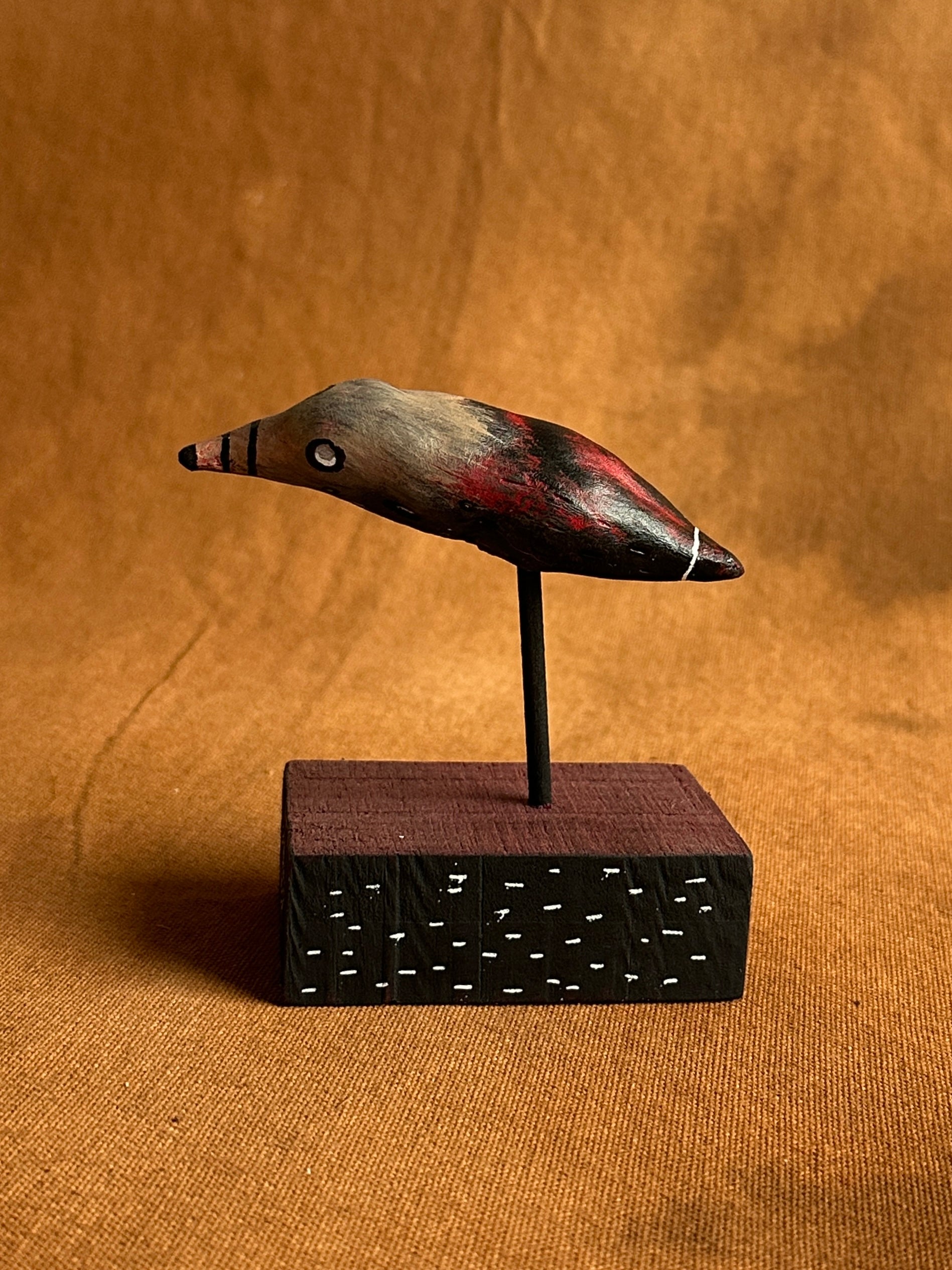 Acrylic, posca on air dry clay on wooden base.