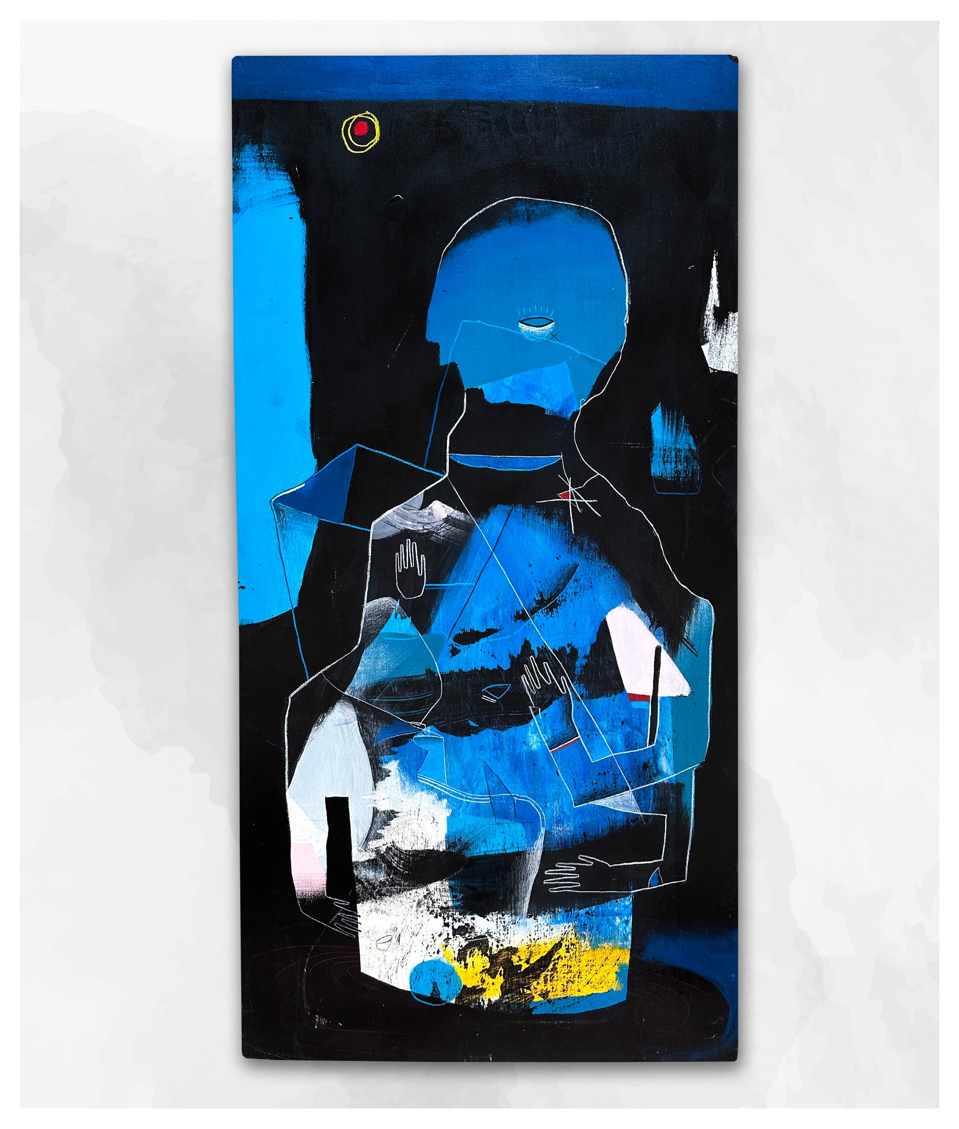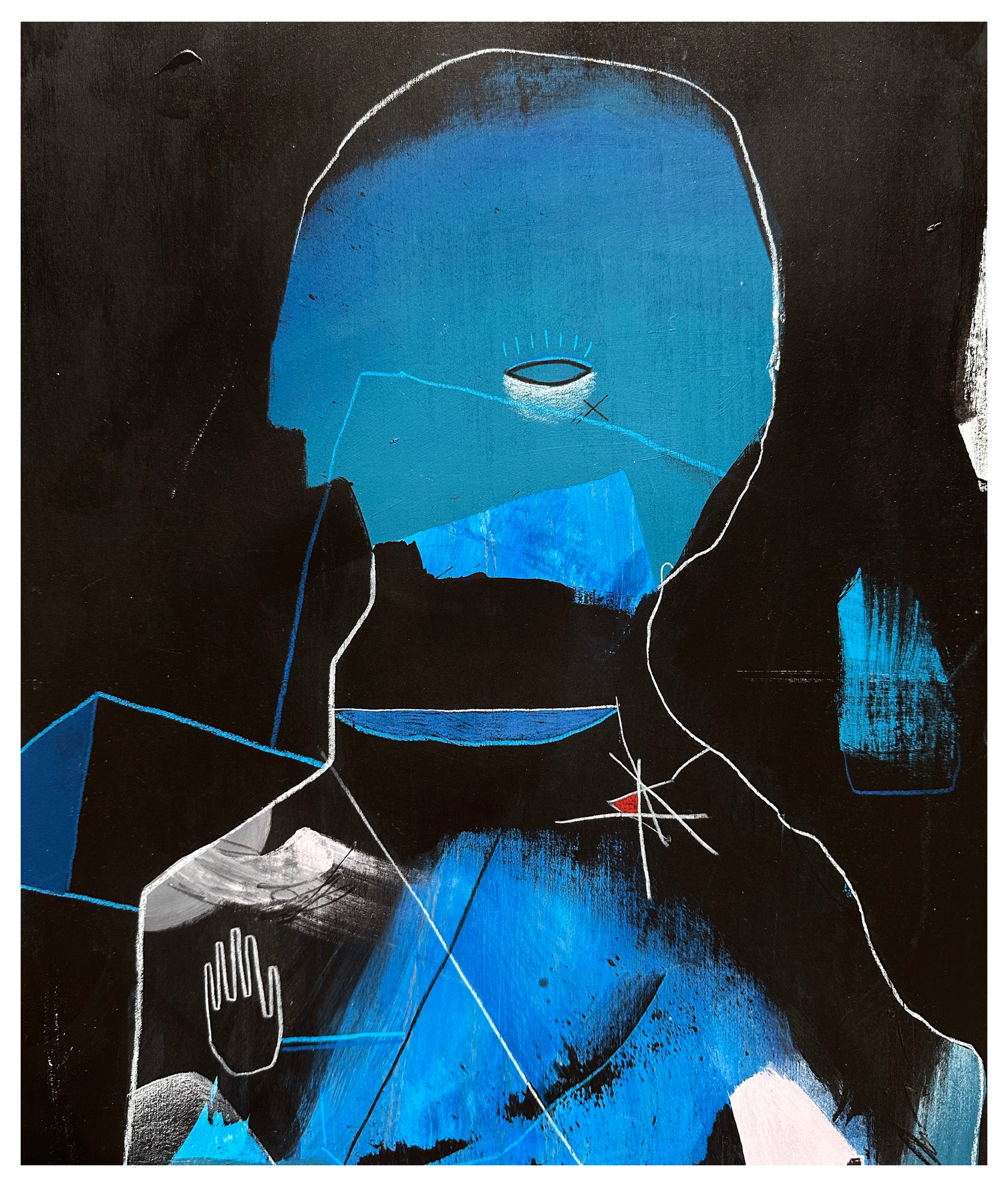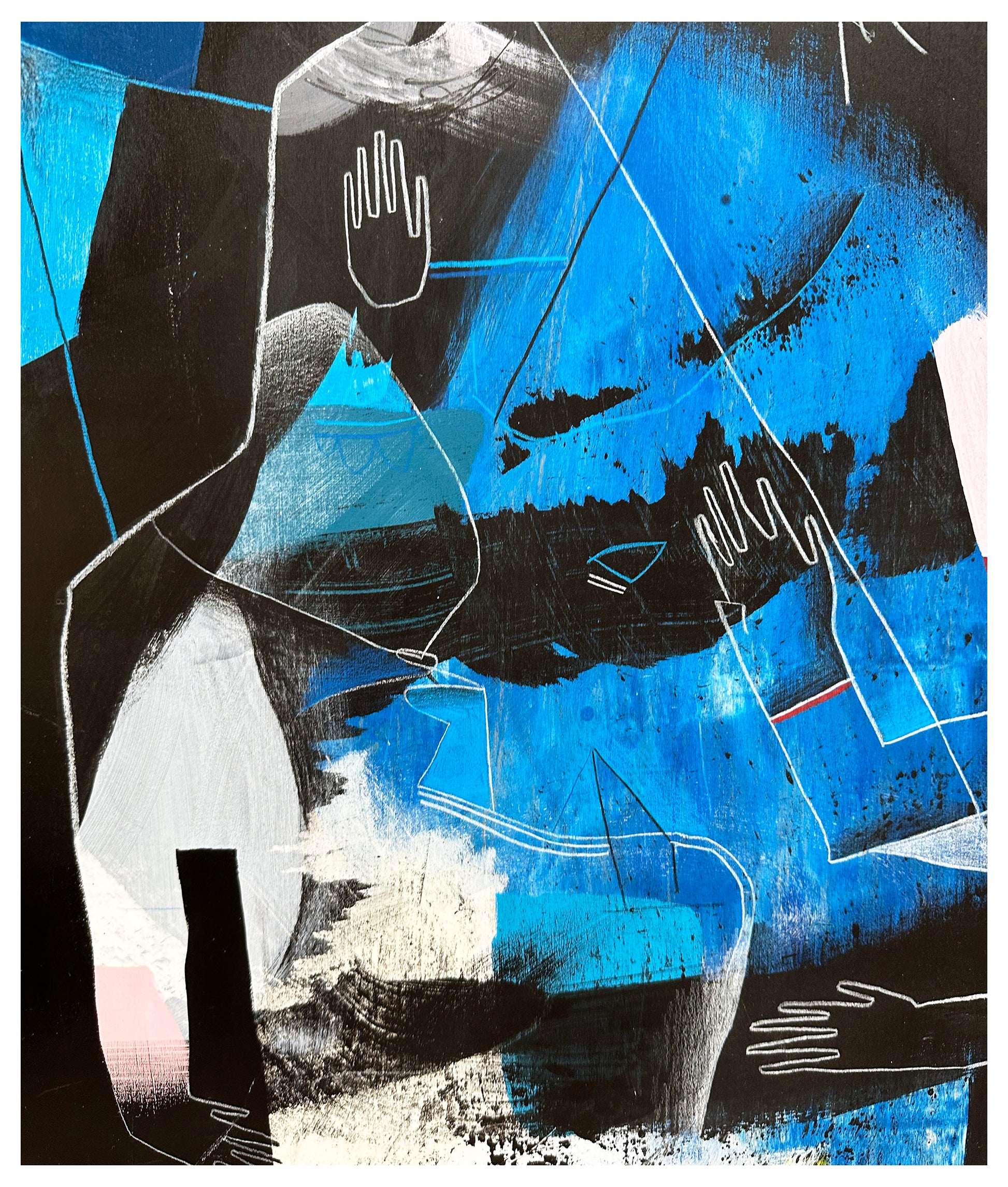 Acrylic, wax pastel, pencil.