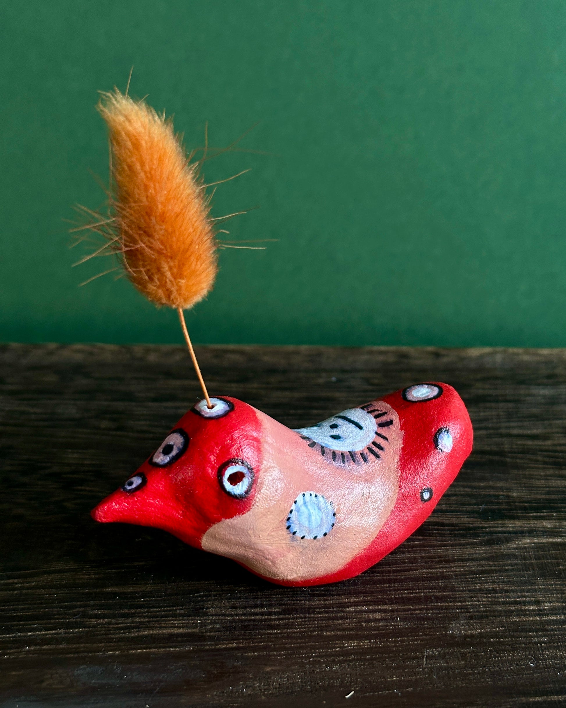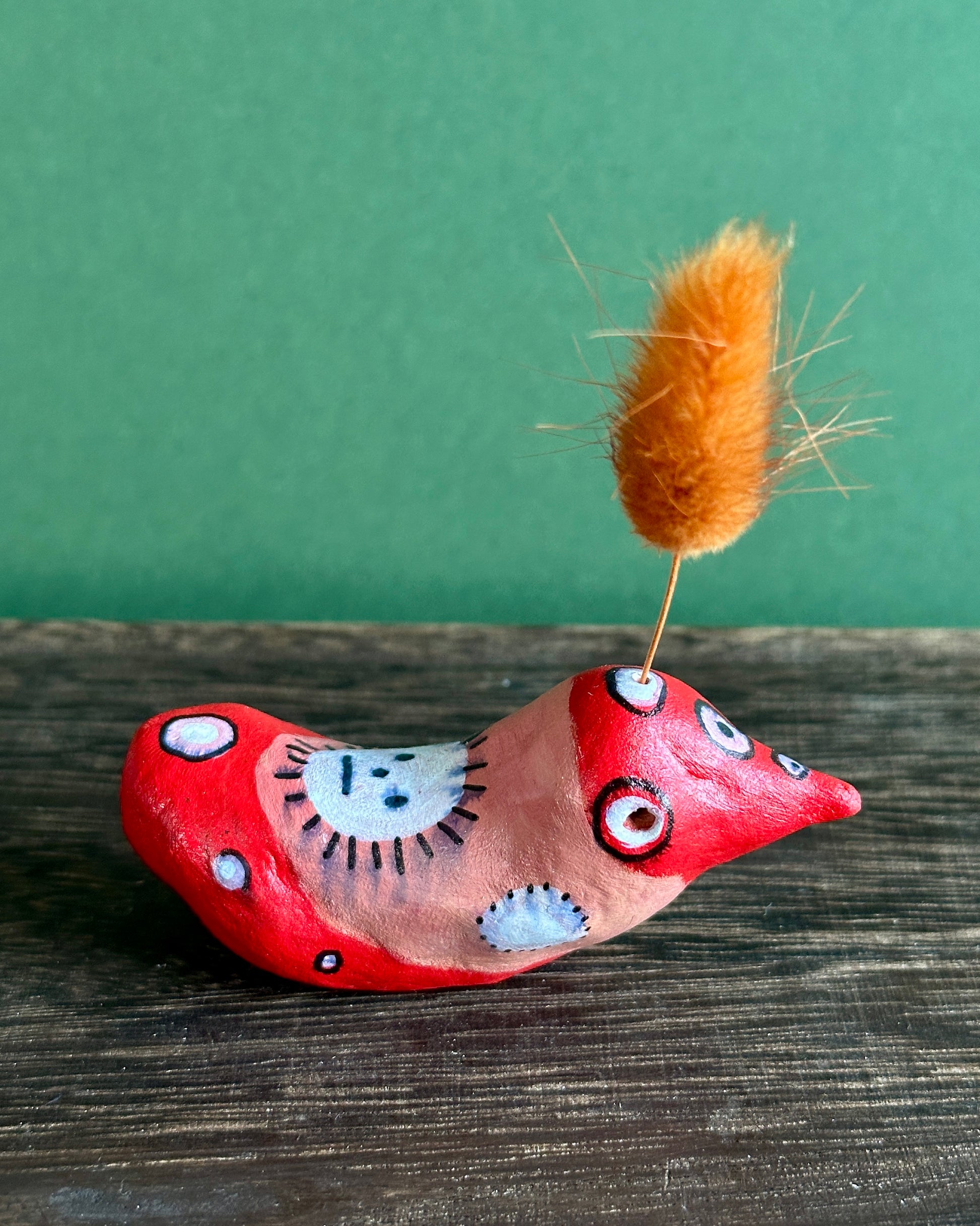 Acrylic, posca, sharpie, bunny tail on air dry clay.
