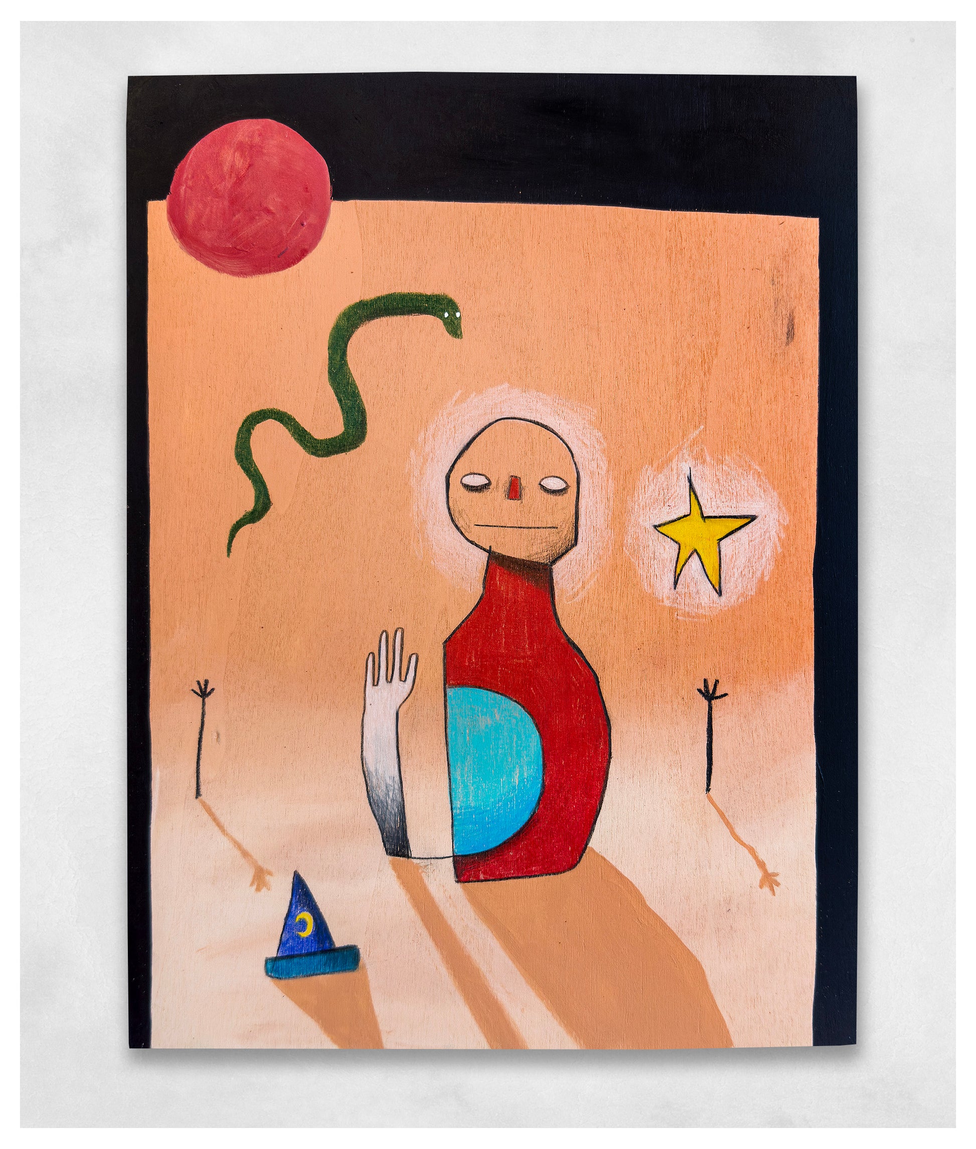 Acrylic, wax pastel, pencil