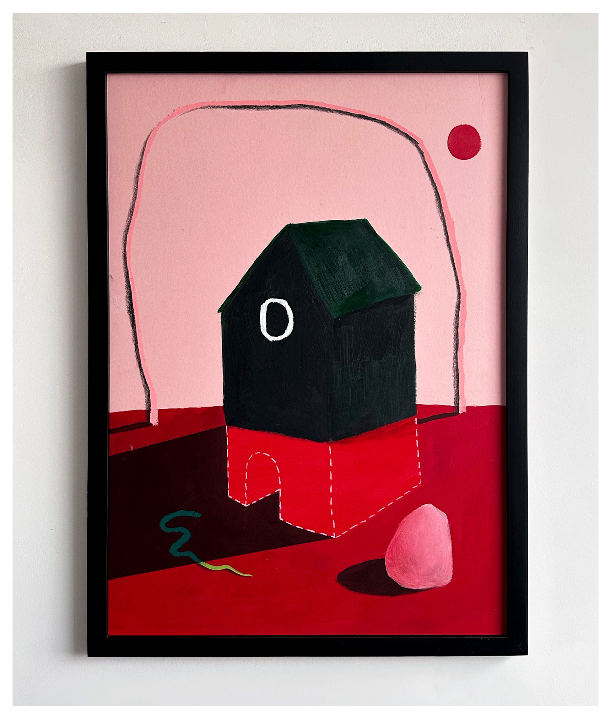 Acrylic, oil pastel, pencil on 420x594mm (A2) pink mat board