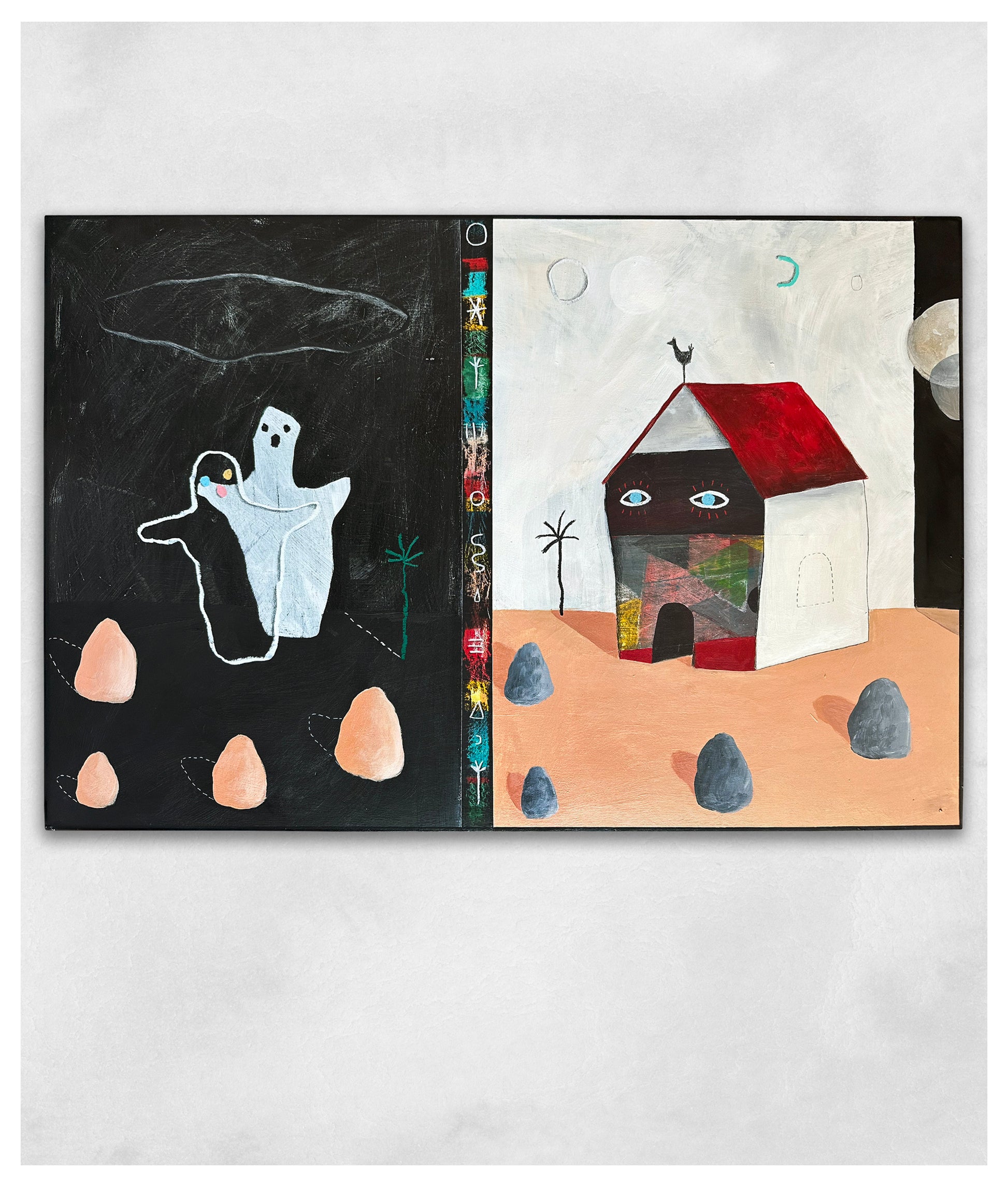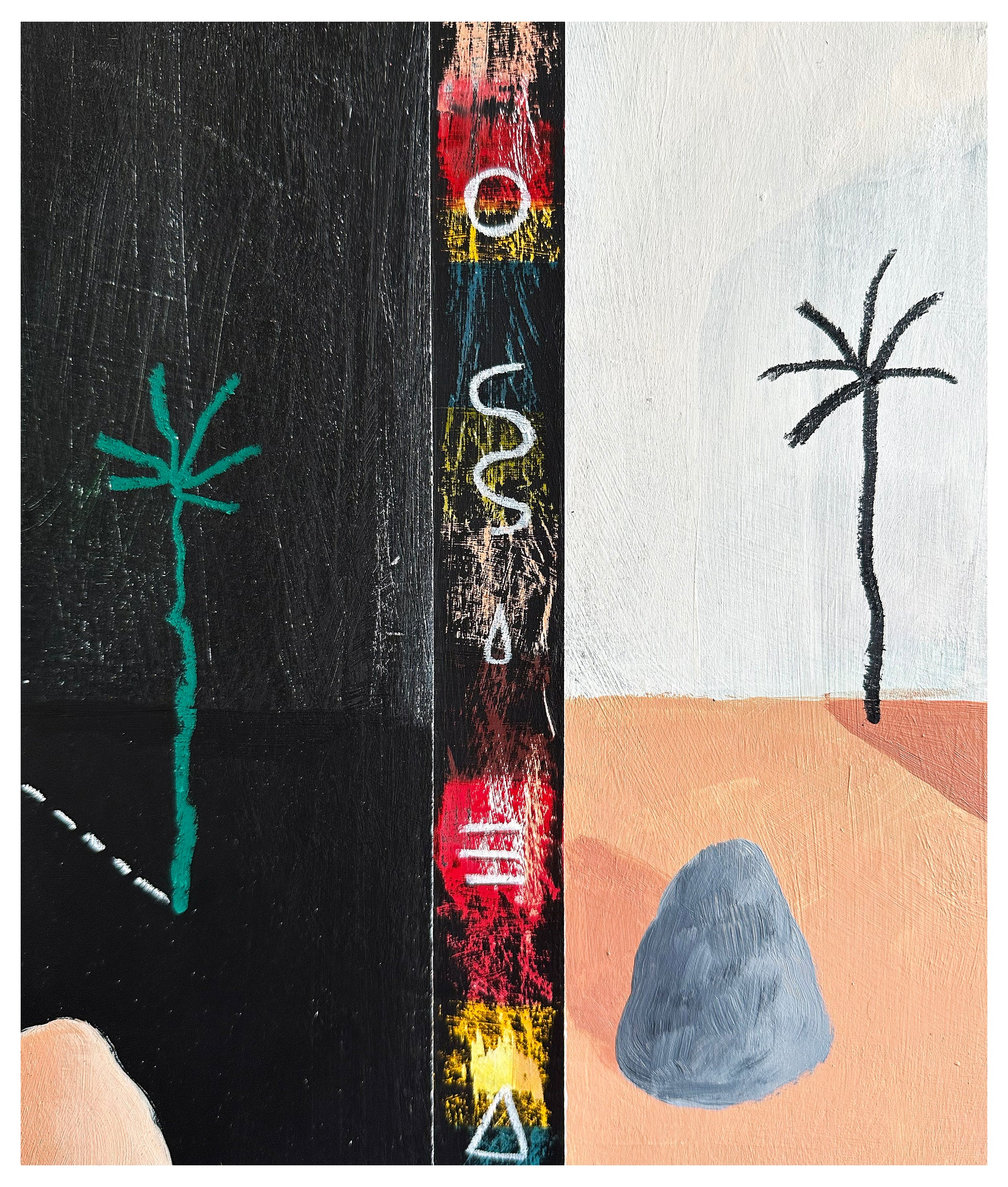 Acrylic, oil pastel, wax pastel, pencil, posca pen.