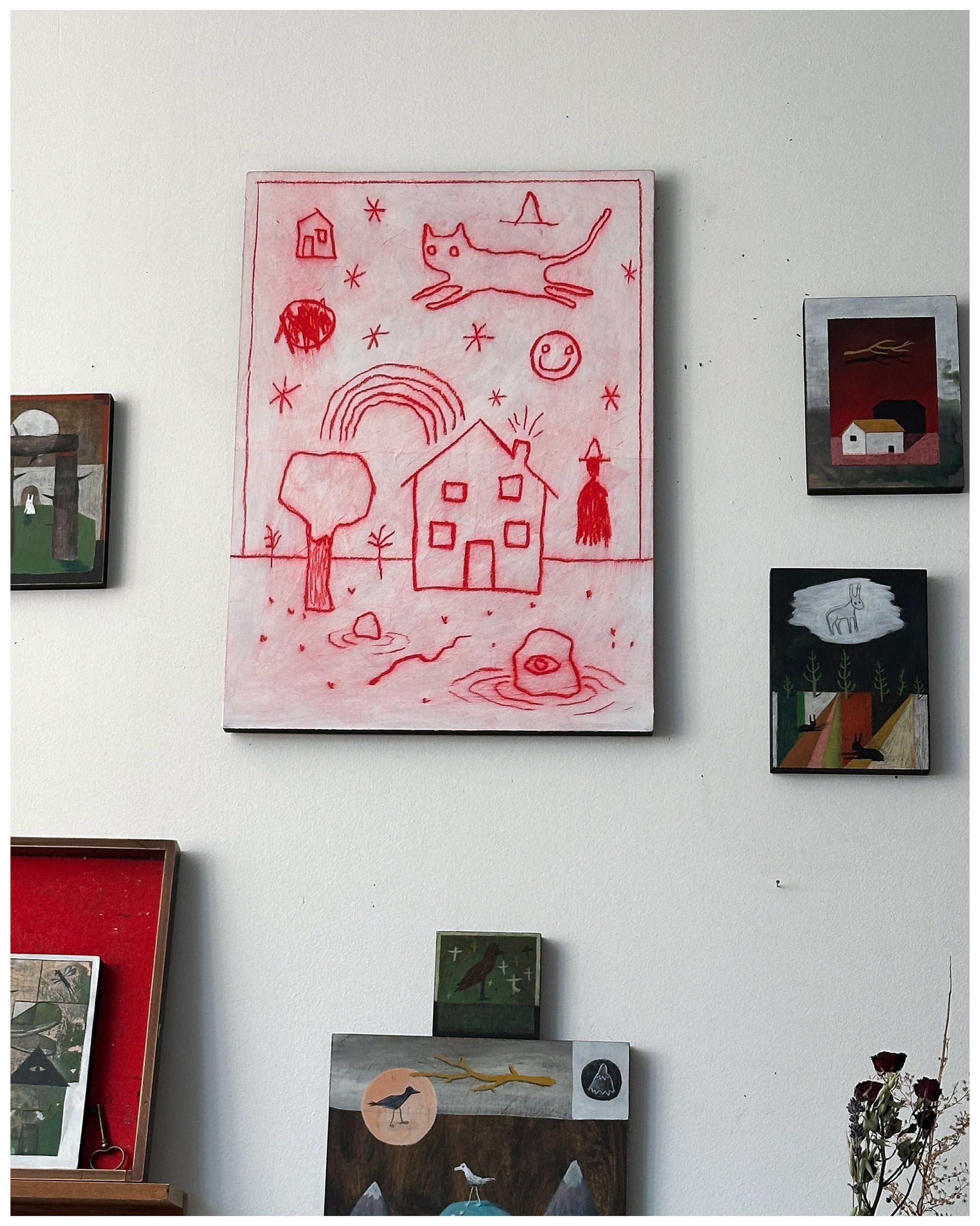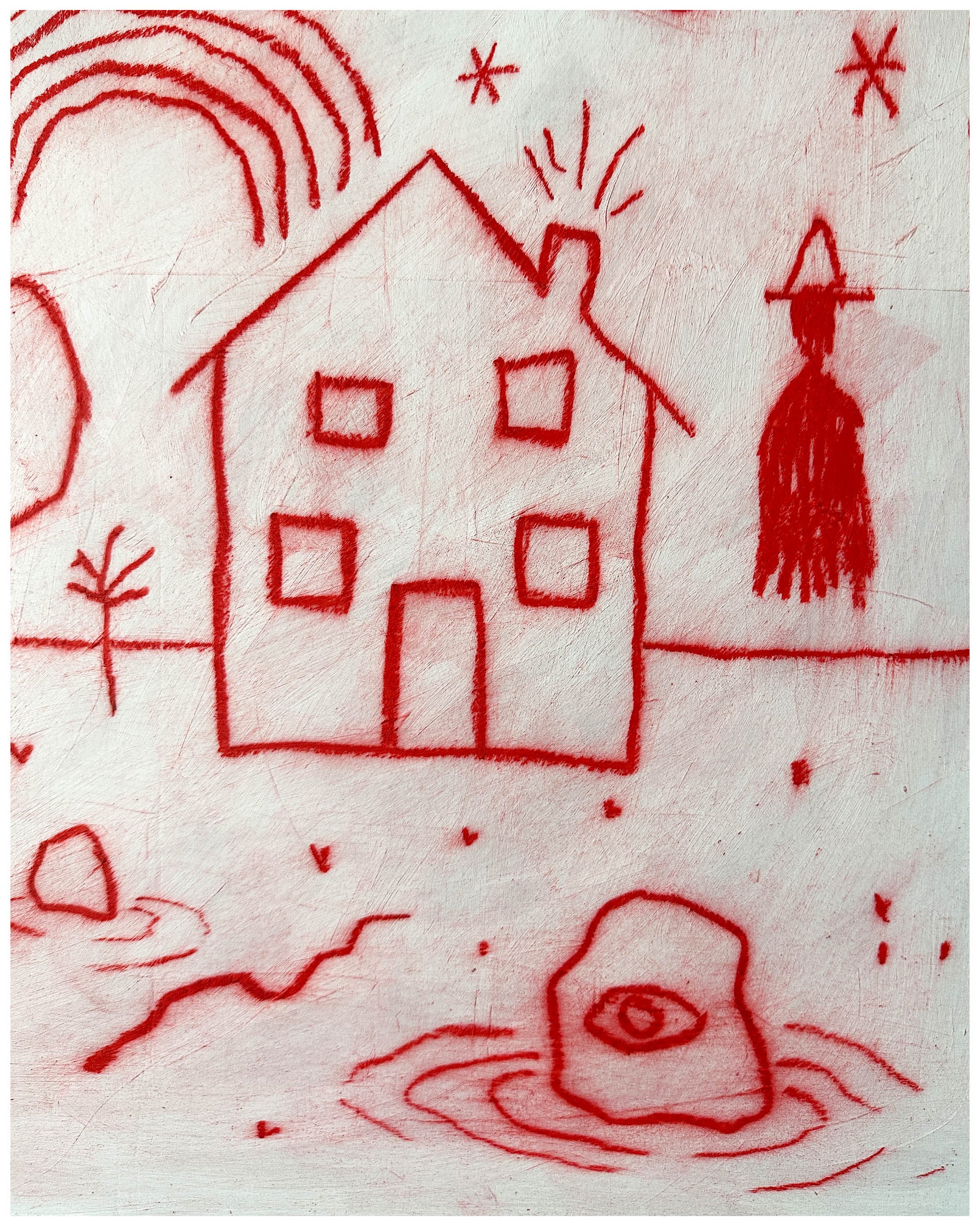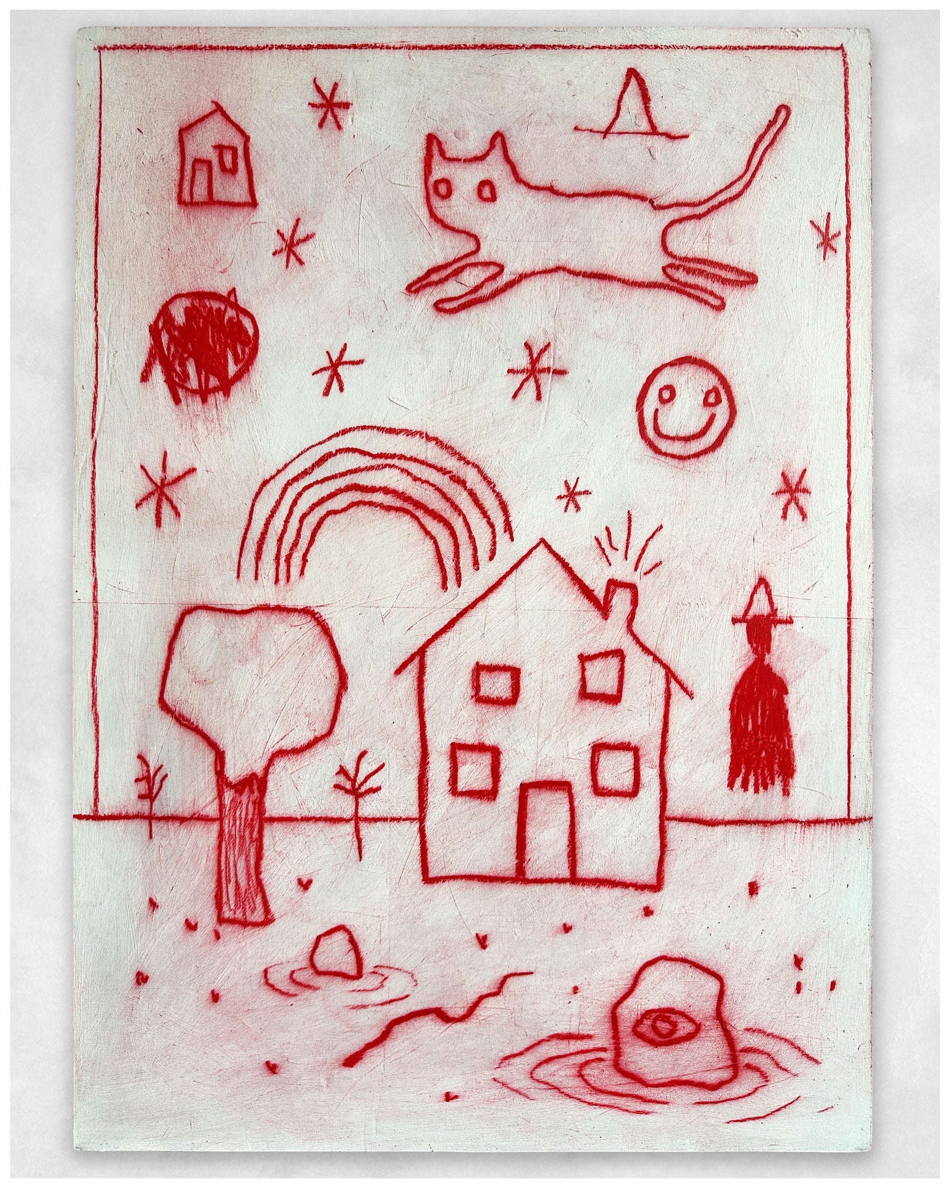 Acrylic, oil pastel.