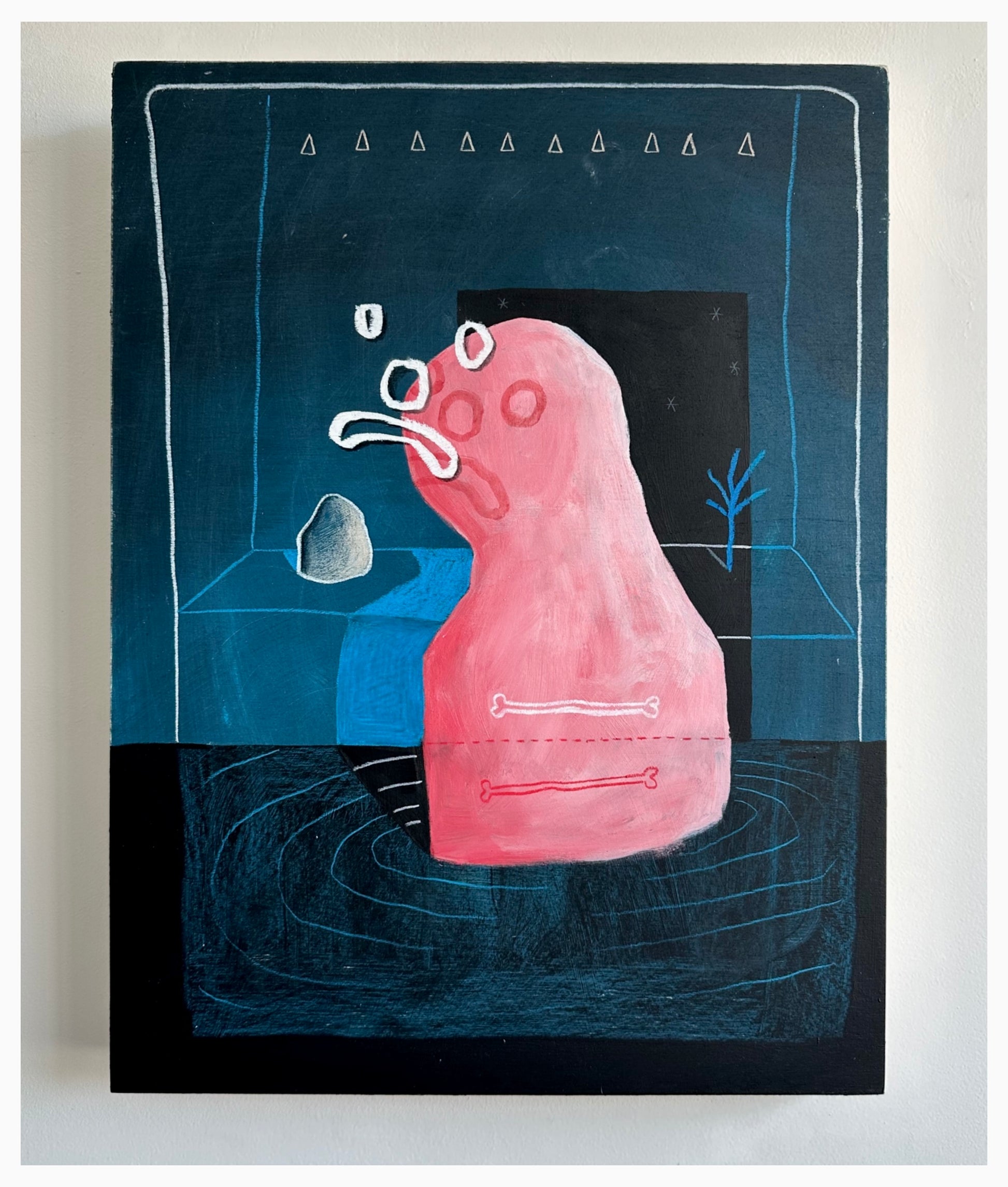 ‘Sad Mona Lisa With a Rock, a Plant, and two bones for arms.’