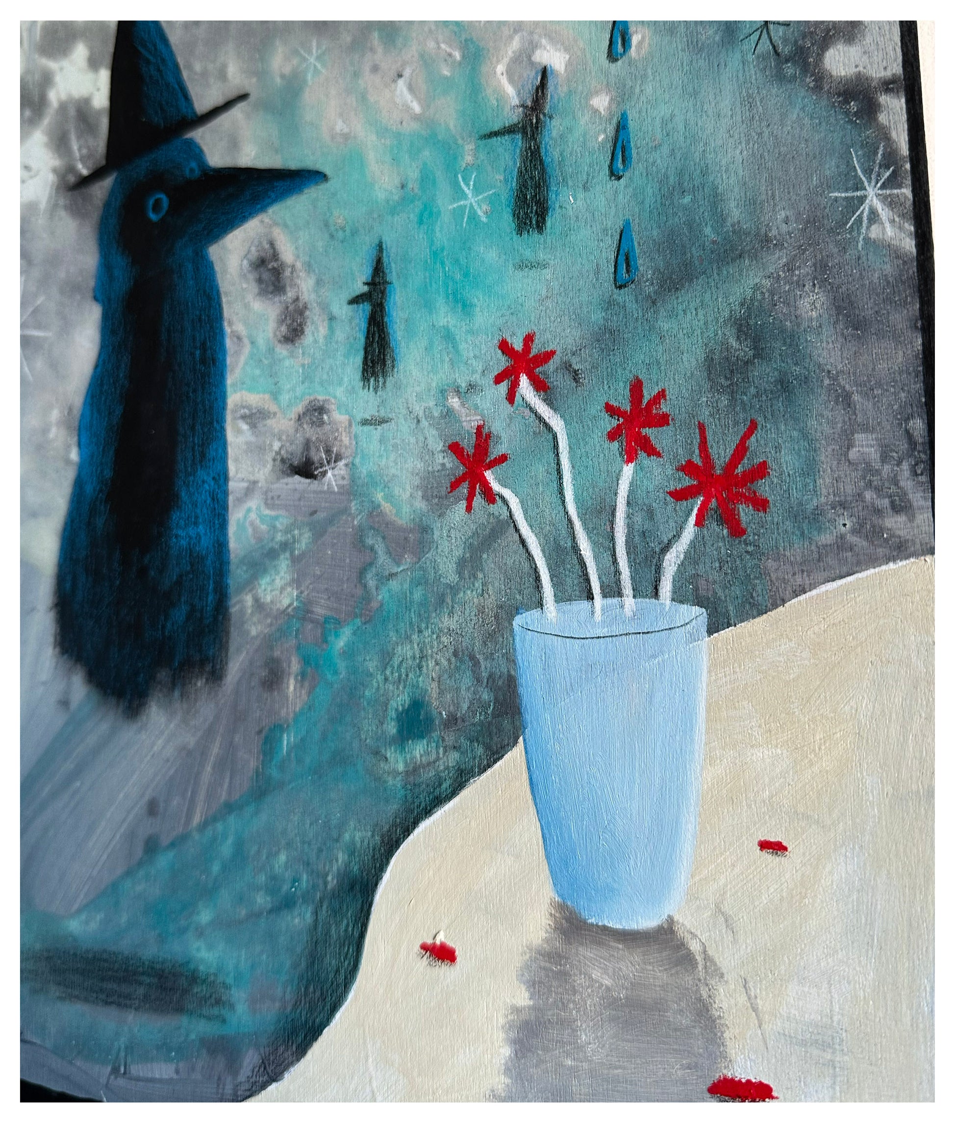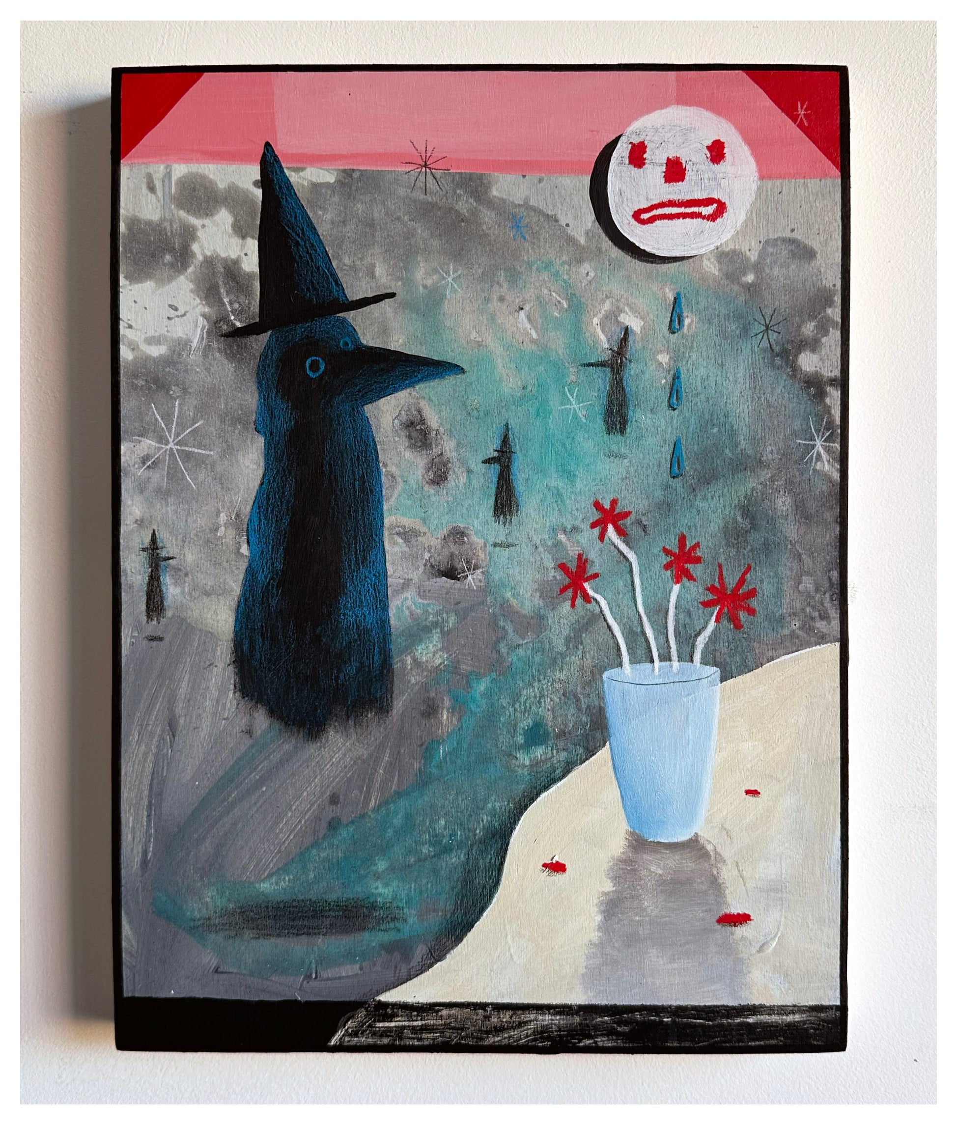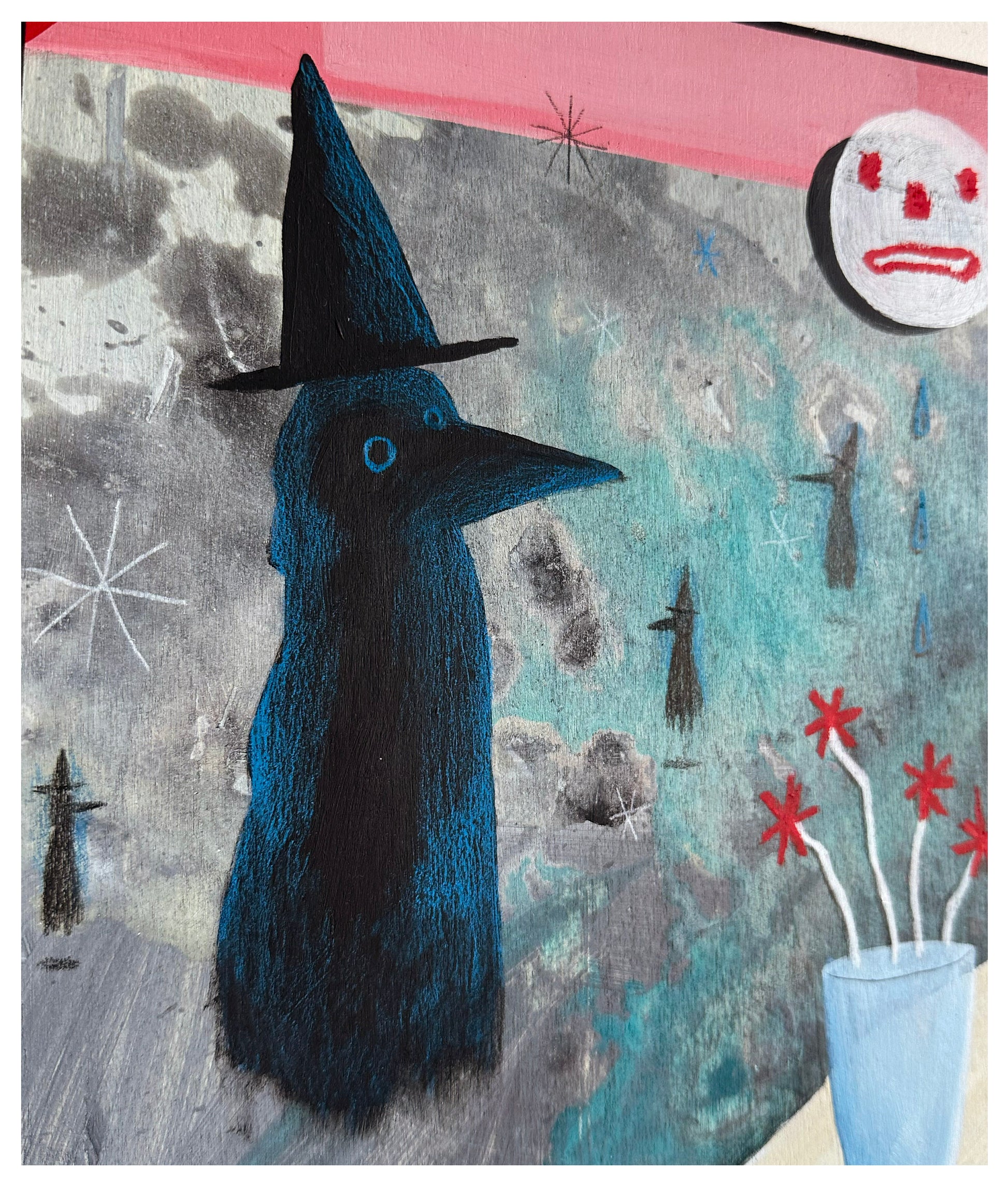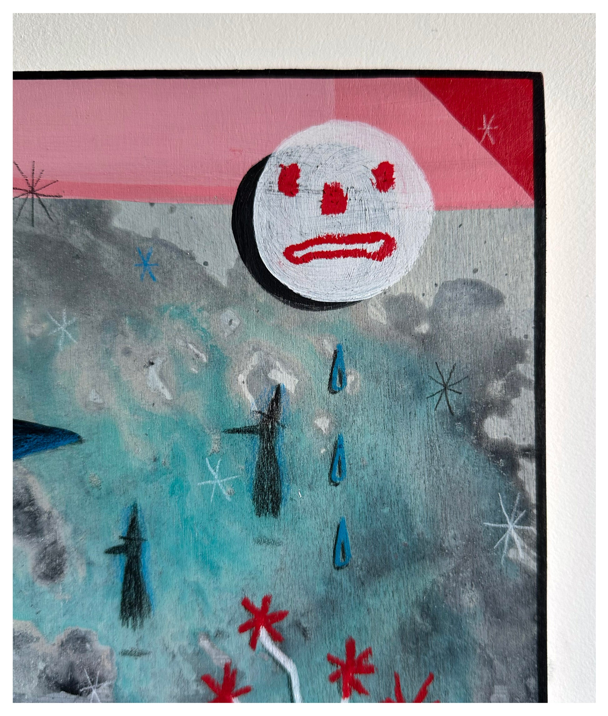 Acrylic, pencil, oil pastel, wax pastel, posca pen.
