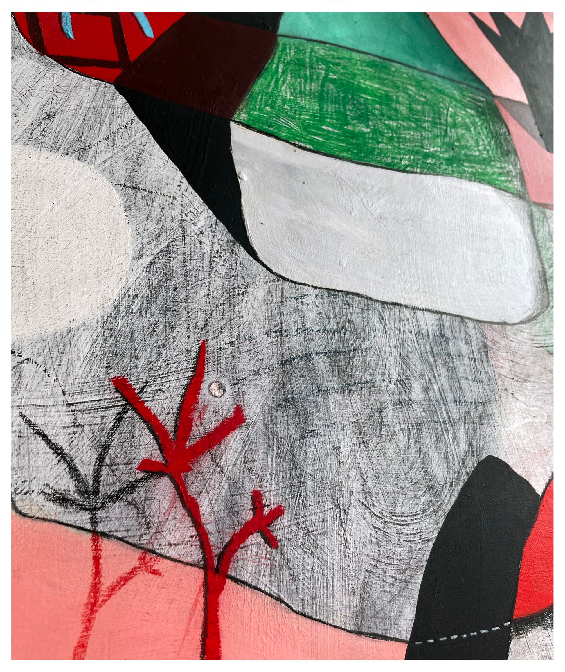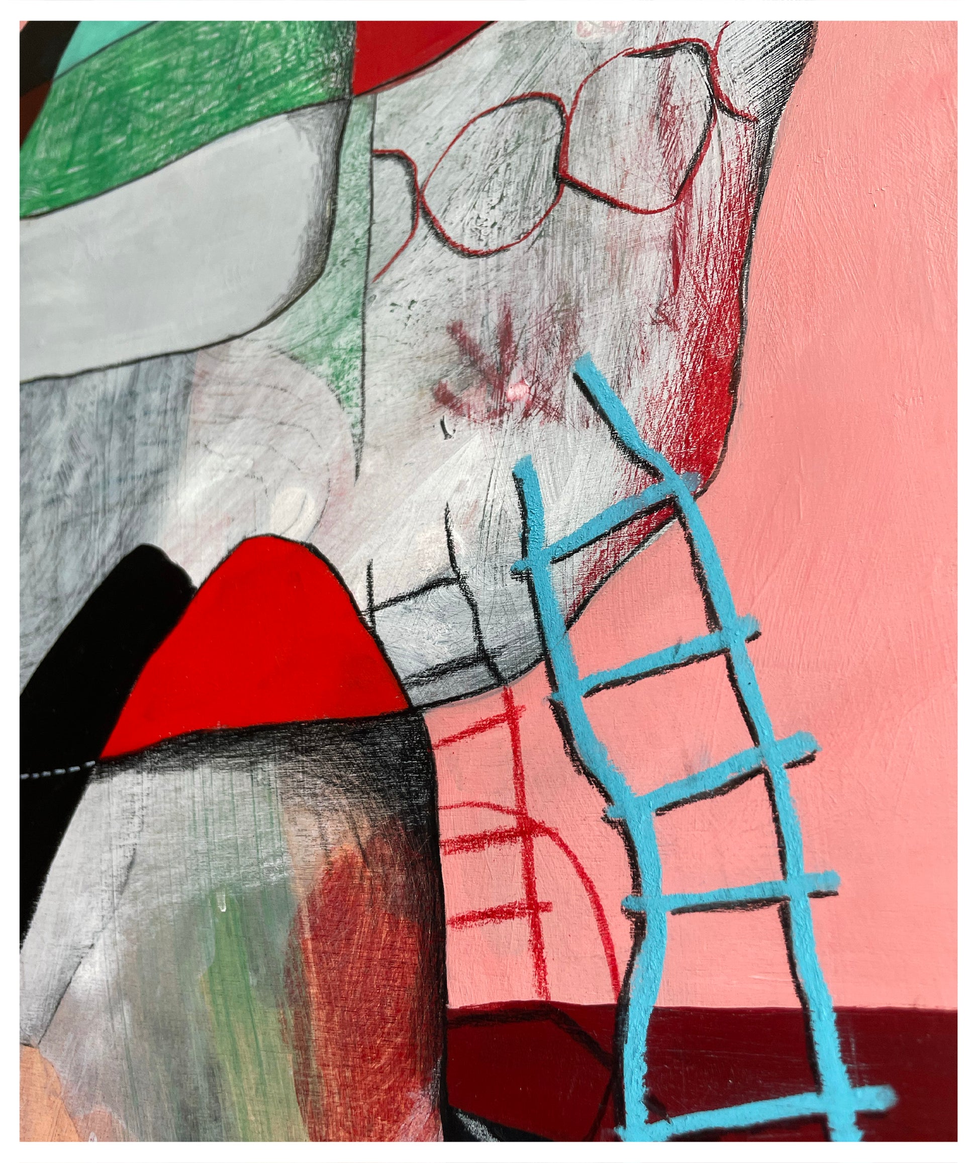Acrylic, oil pastel, pencil