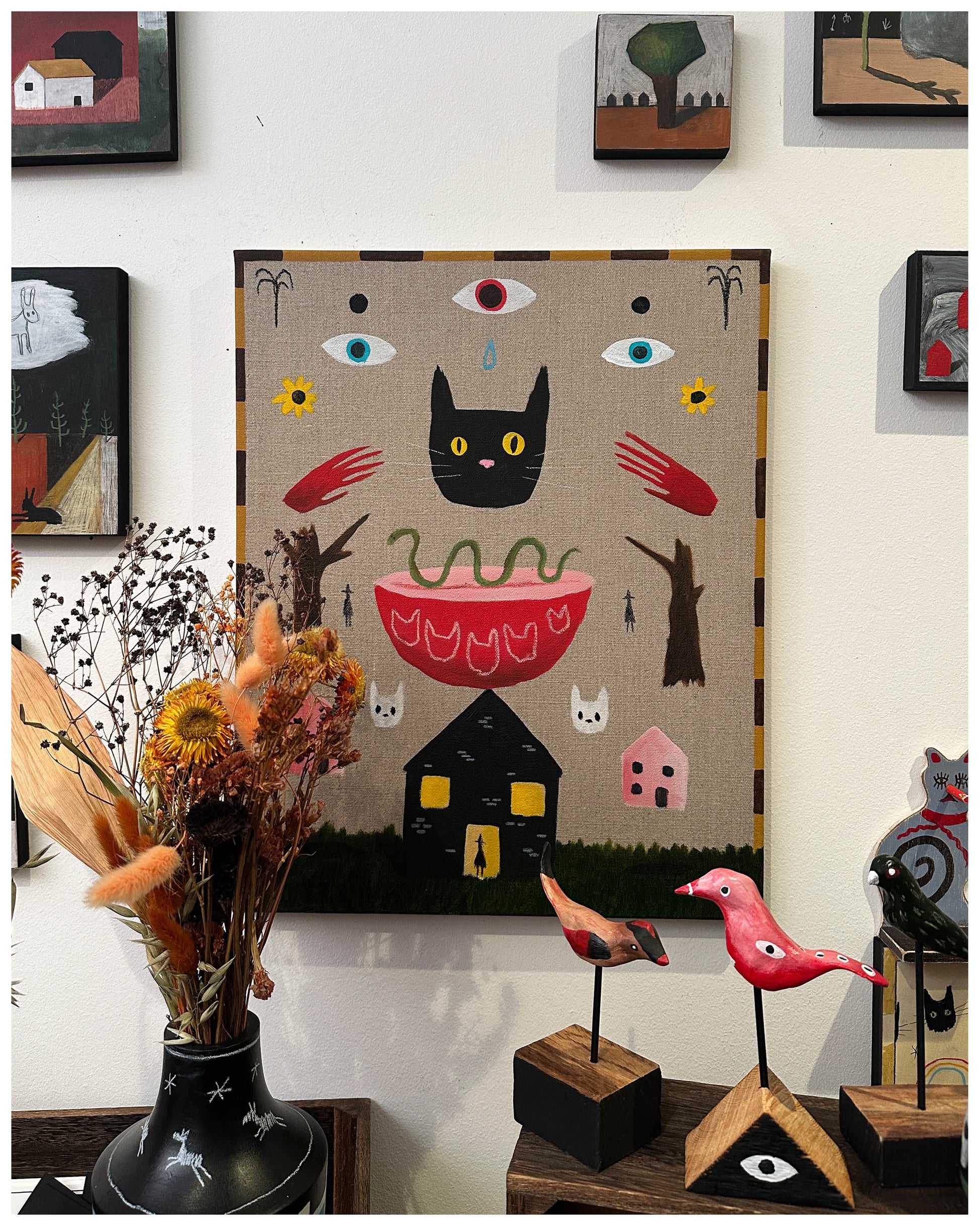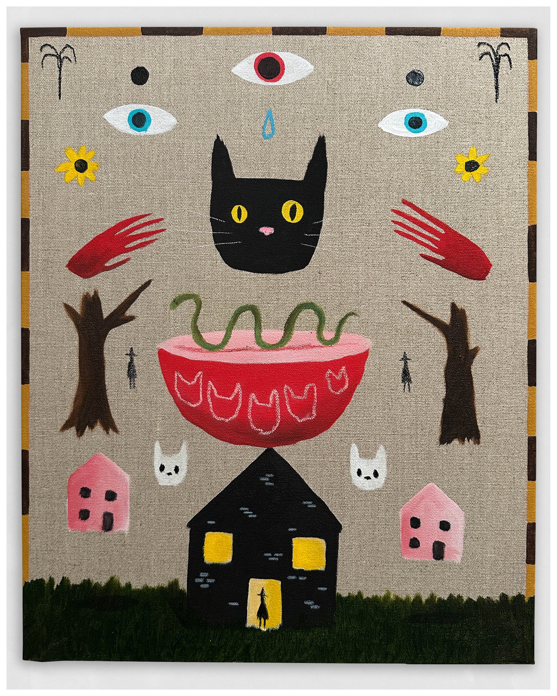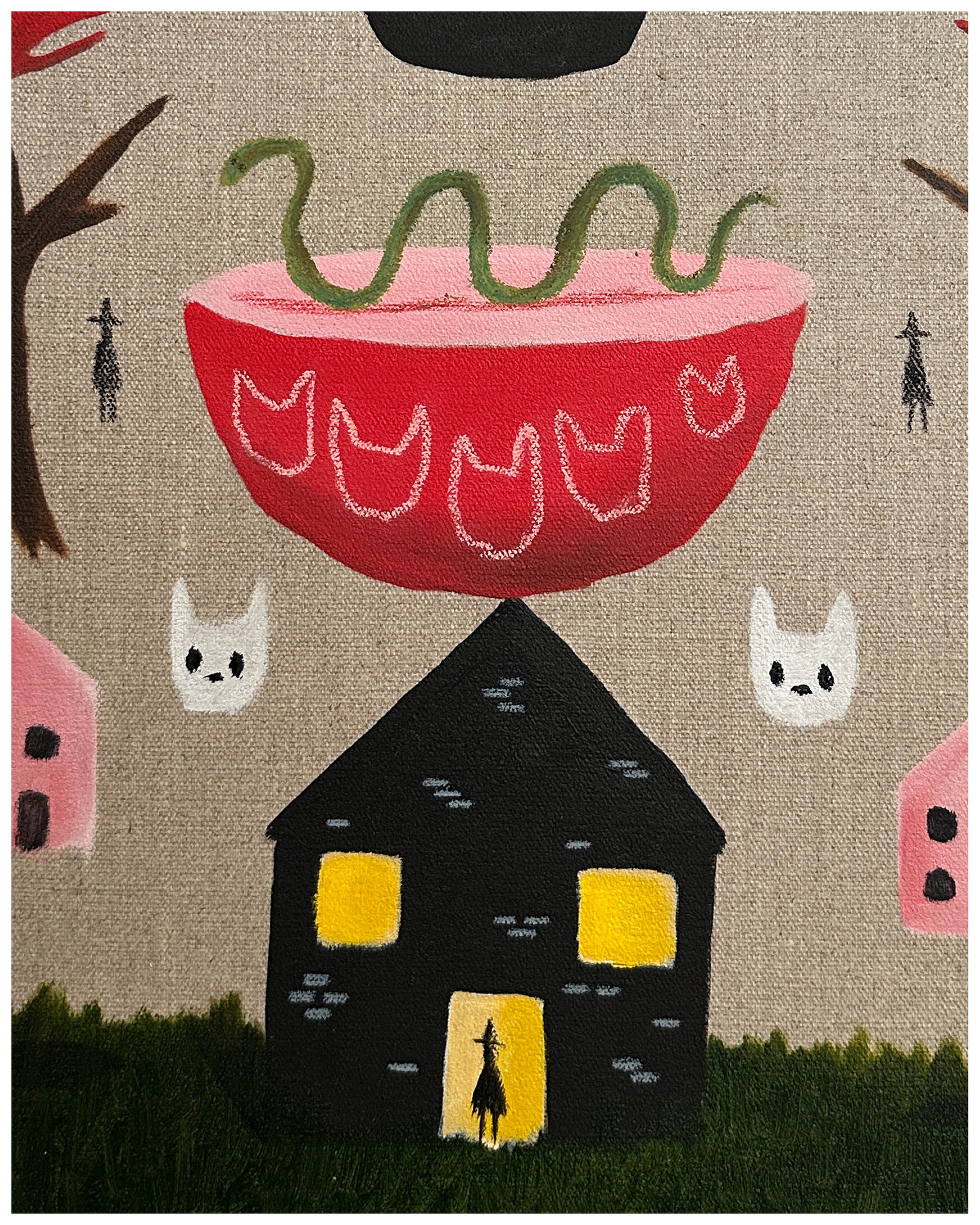 Acrylic, oil pastel, pencil.
