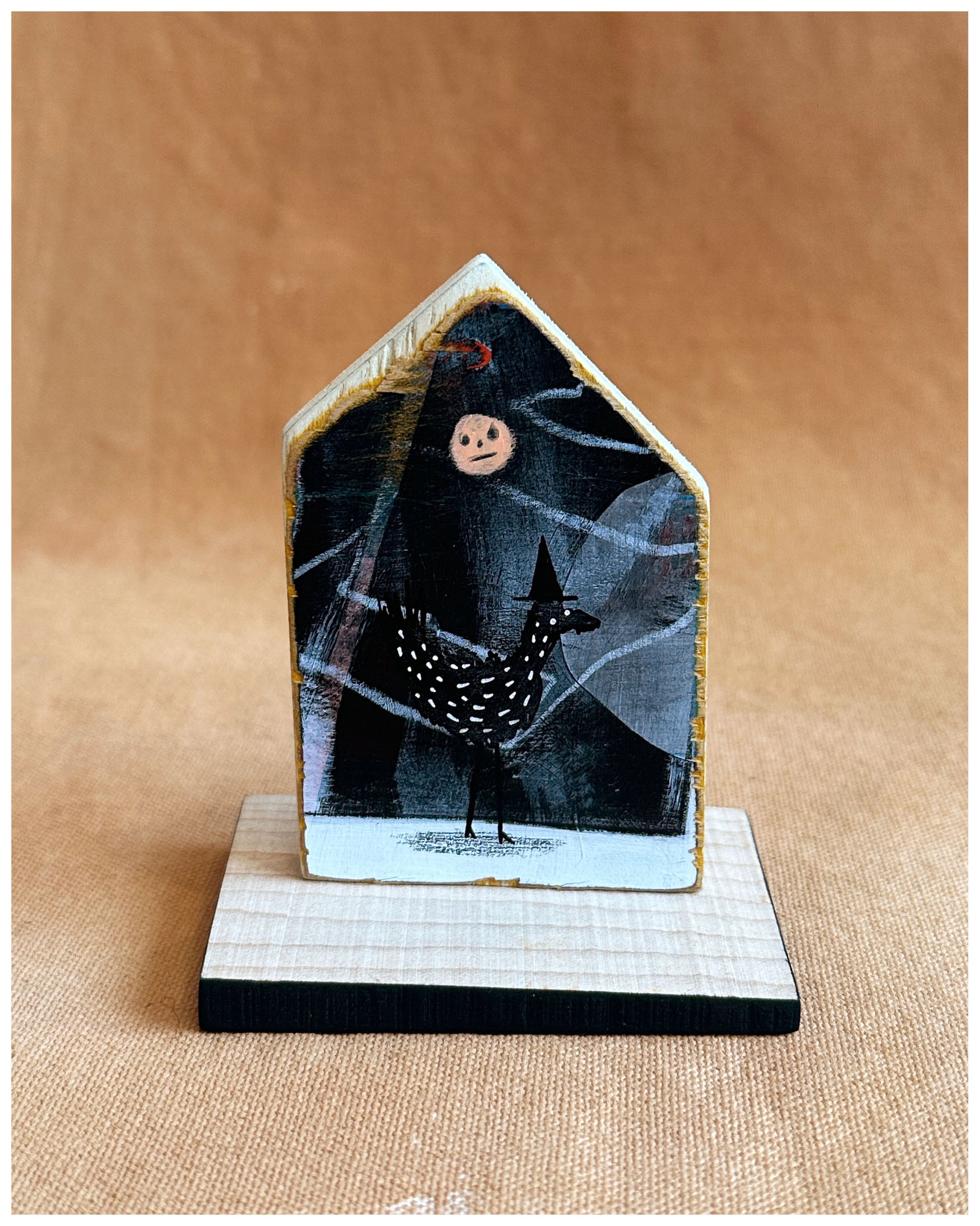 Acrylic, pastel, pencil on 9.5x8x5cm reclaimed wood*.