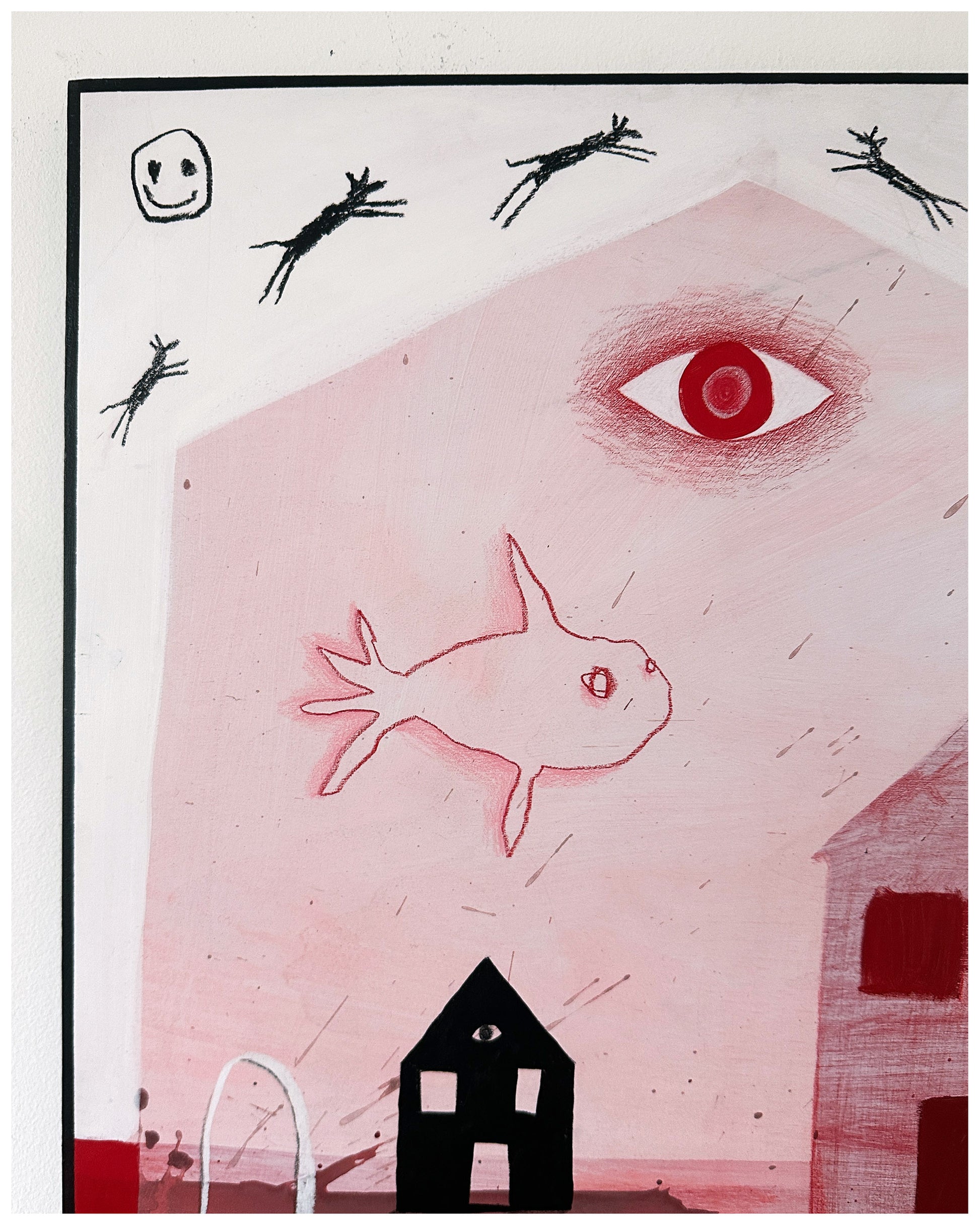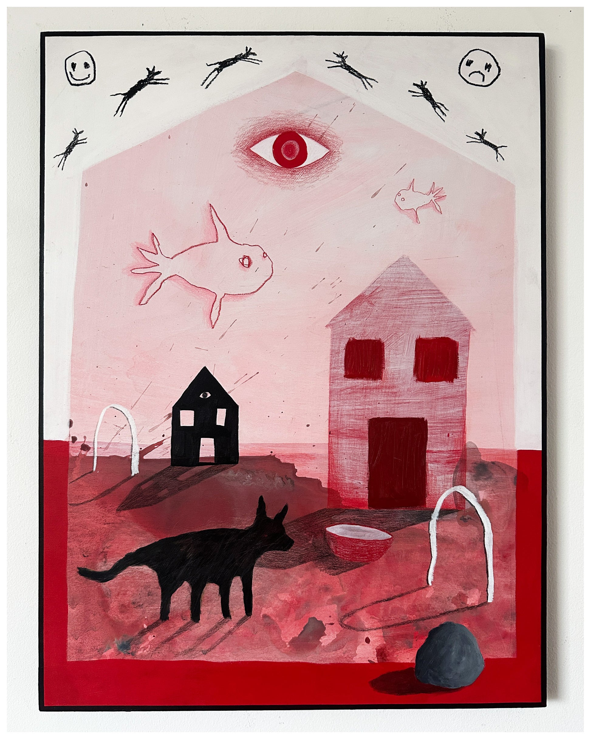Acrylic, pencil, wax pastel, oil pastel, posca.