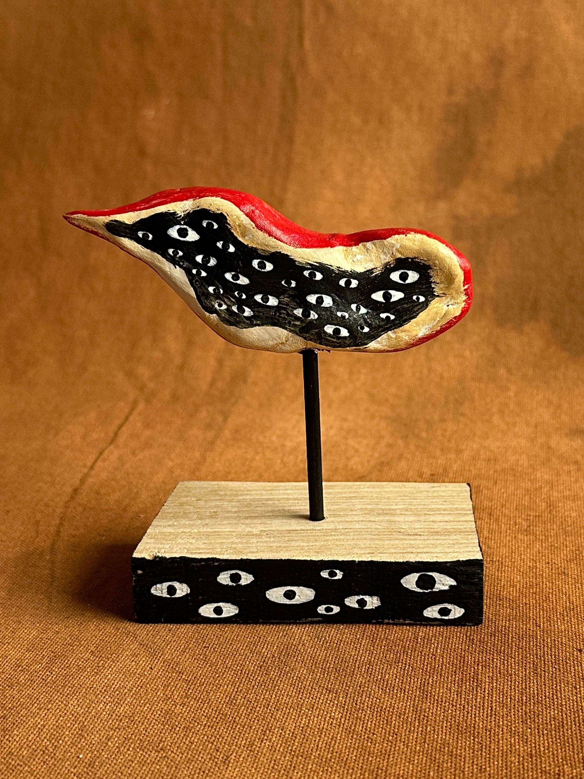 Acrylic, posca on air dry clay on wooden base.