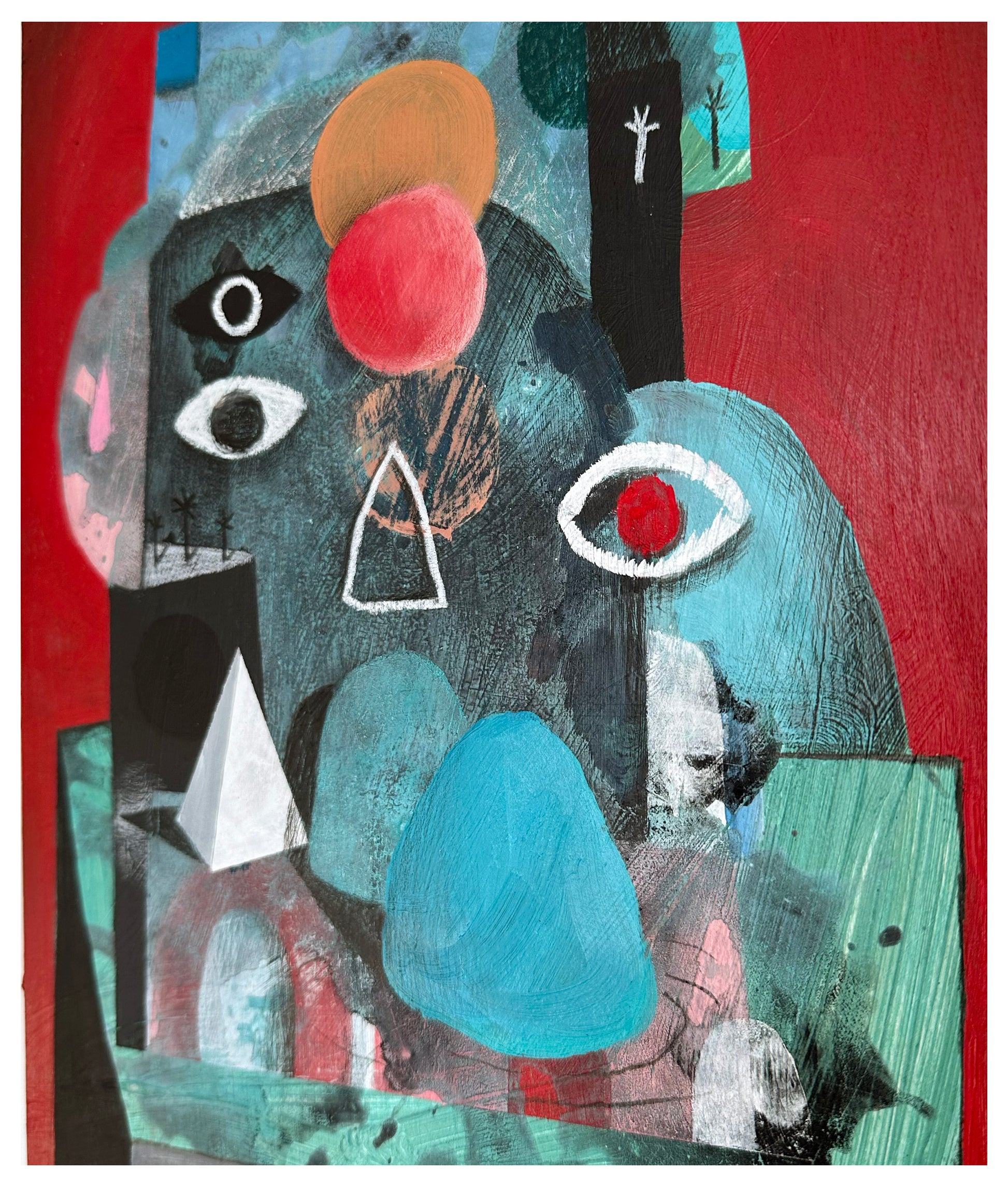 Acrylic, oil pastel, pencil