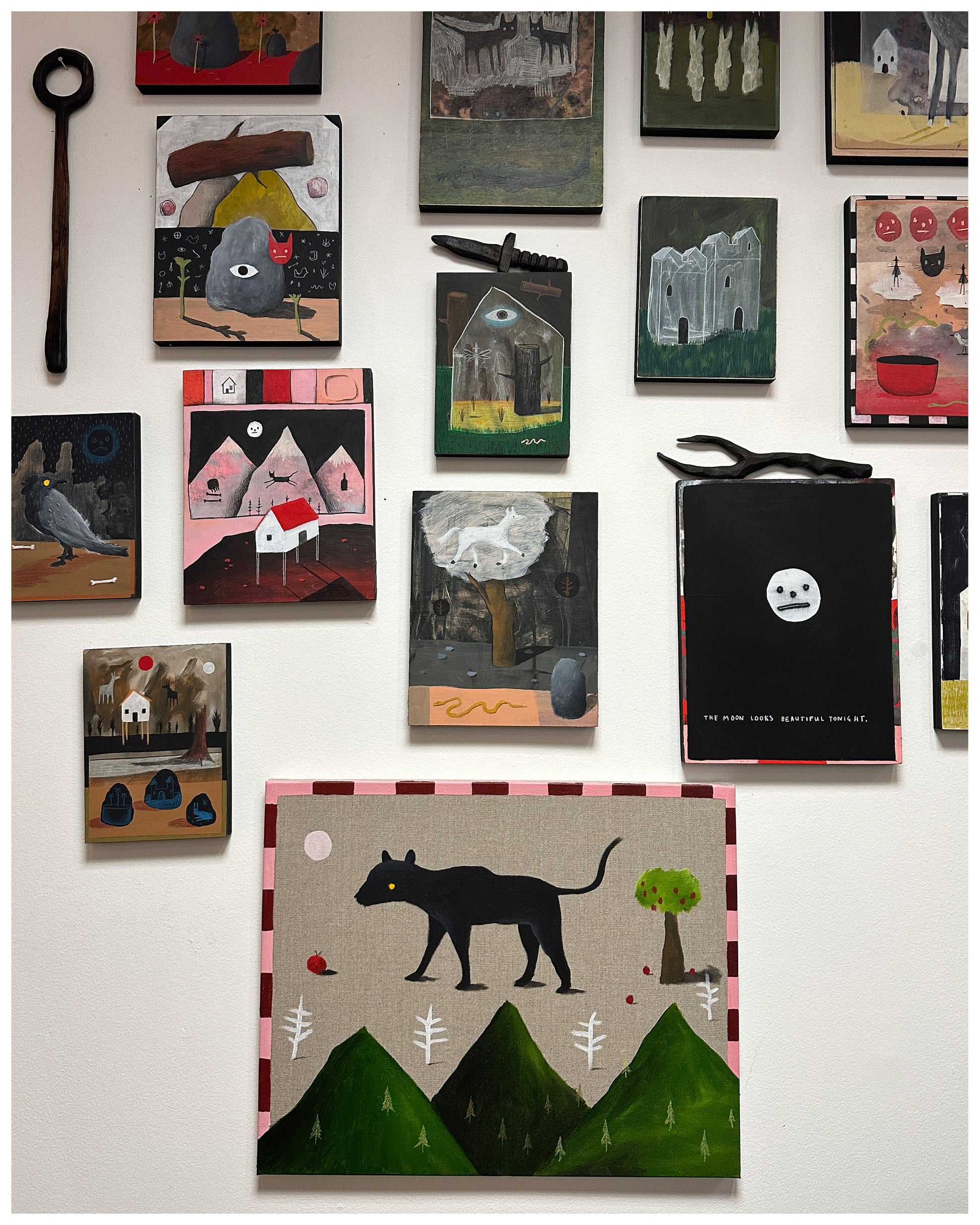 Acrylic, wax pastel, pencil.