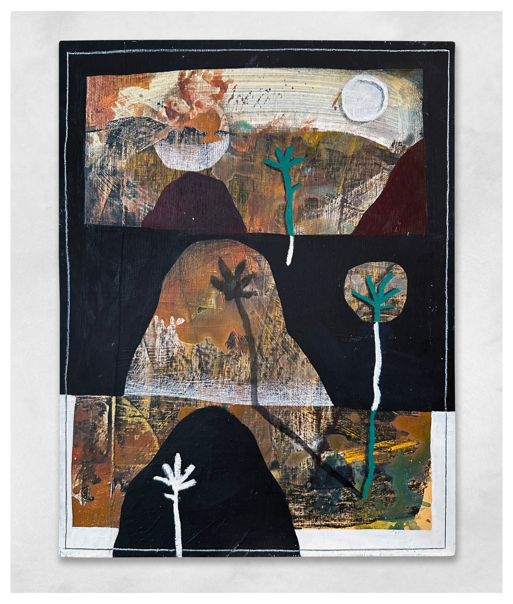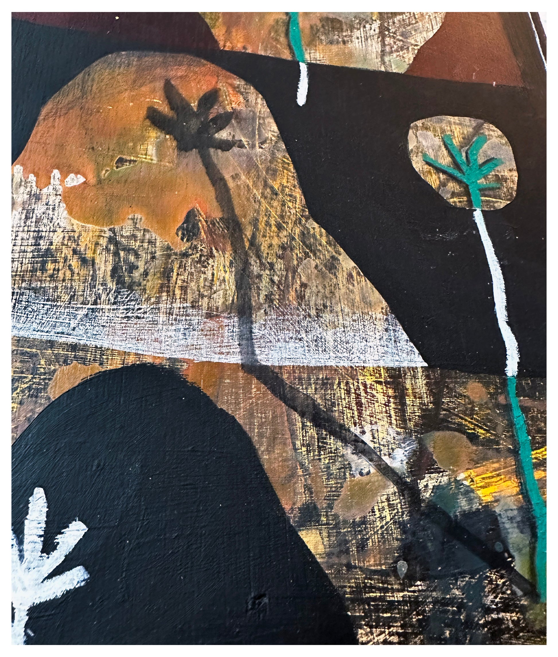 Acrylic, pencil, oil pastel