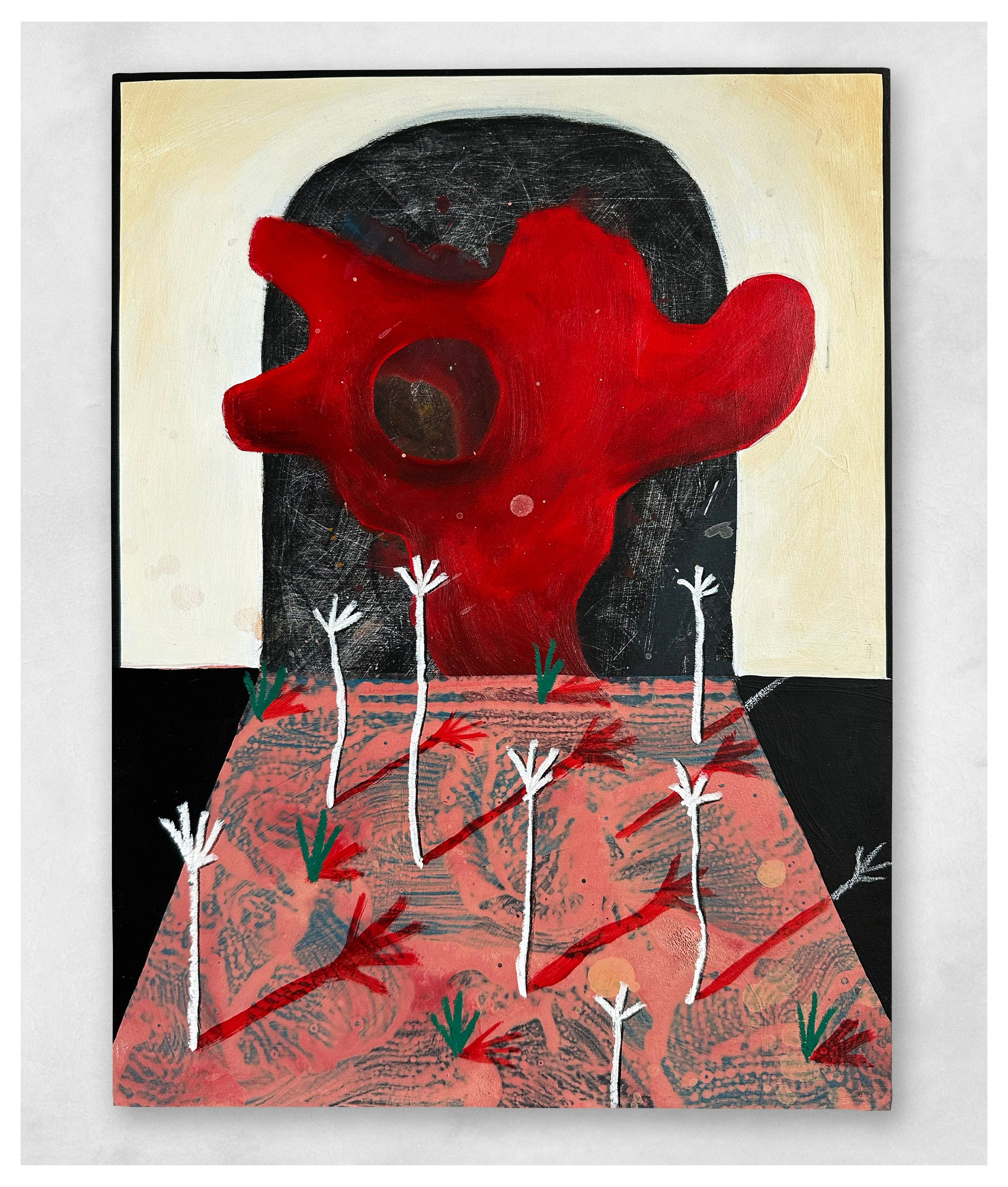 Acrylic, oil pastel, pencil, posca.