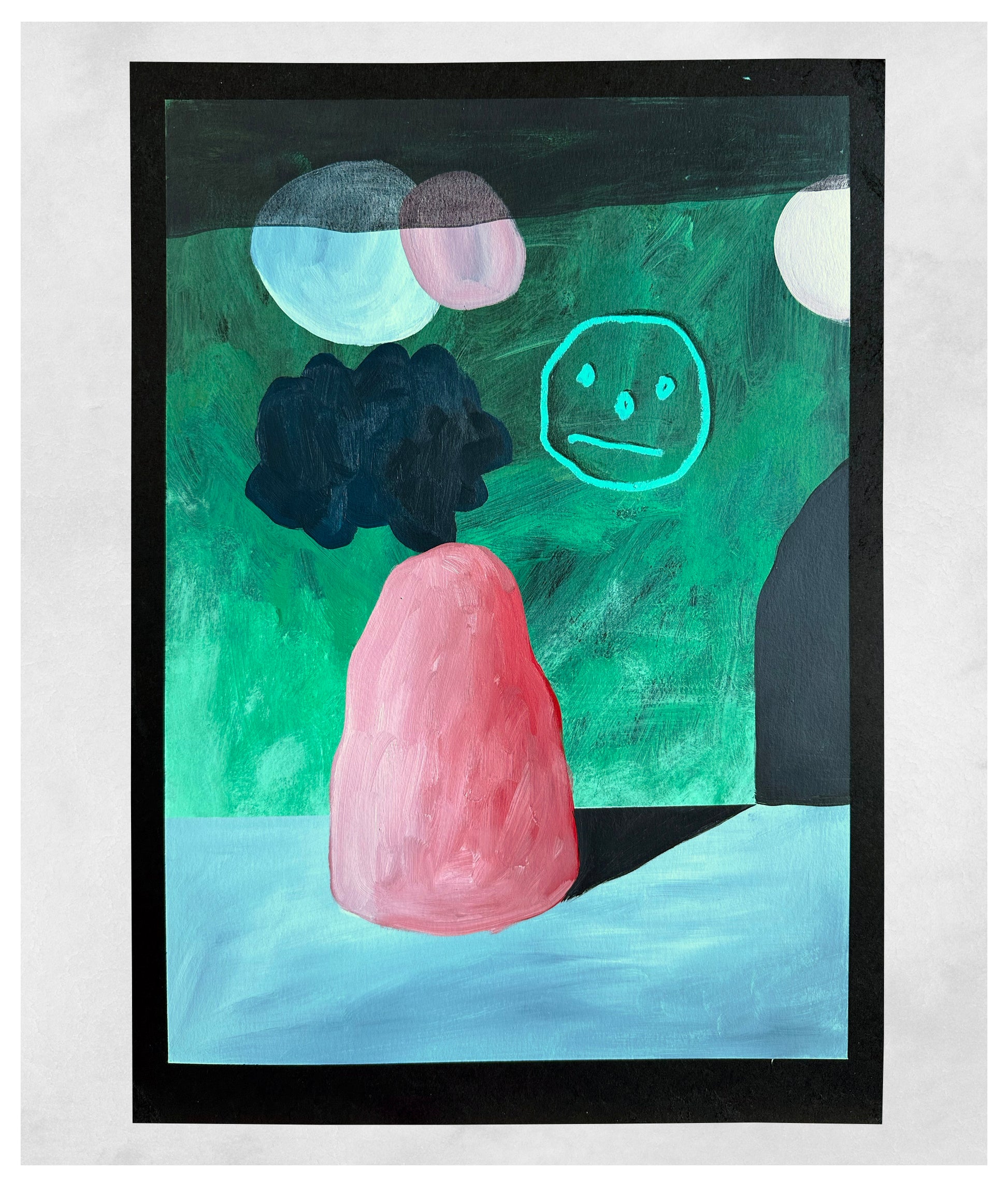 Acrylic, oil pastel, colour pencil on 297x420mm Fabriano black paper