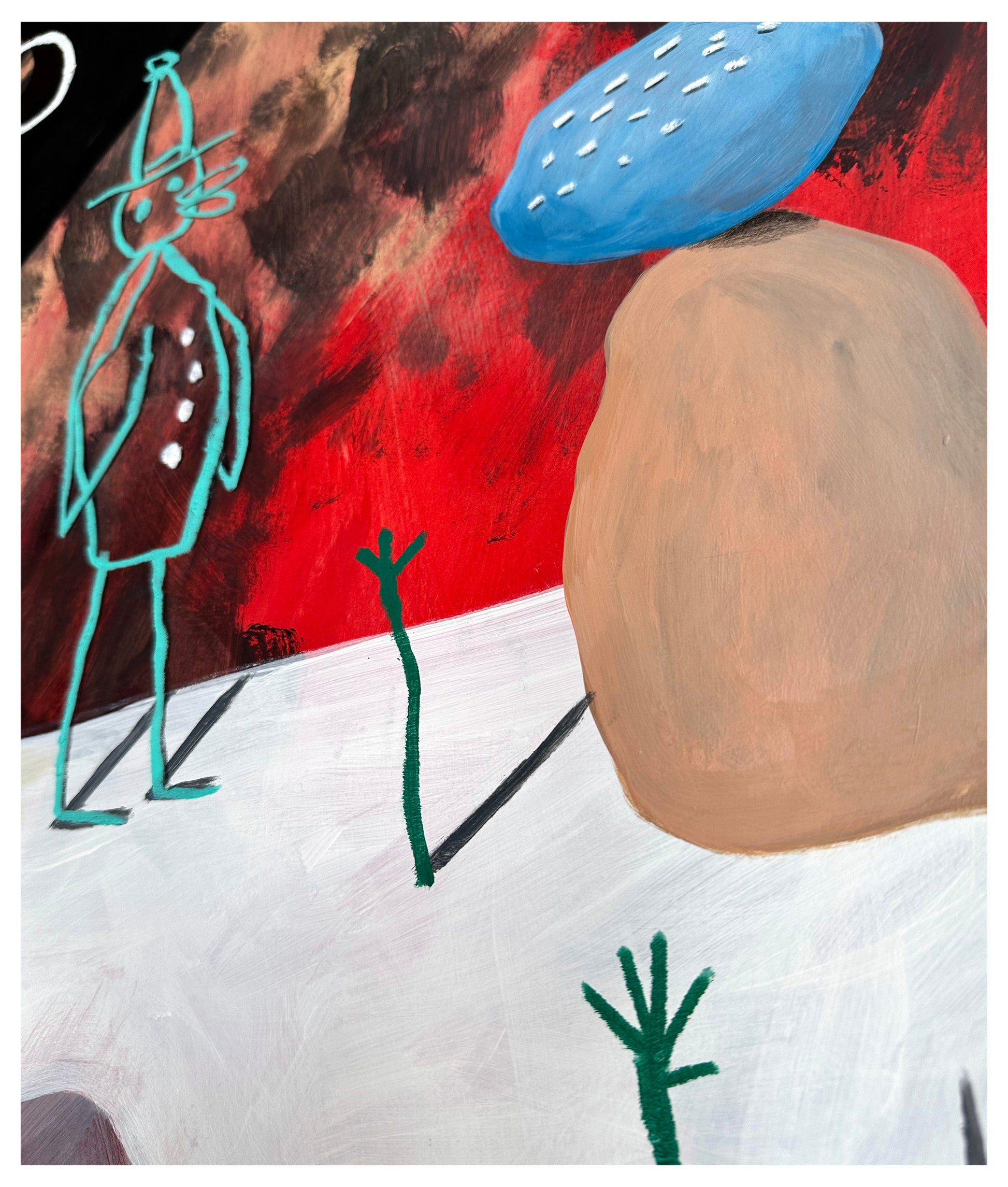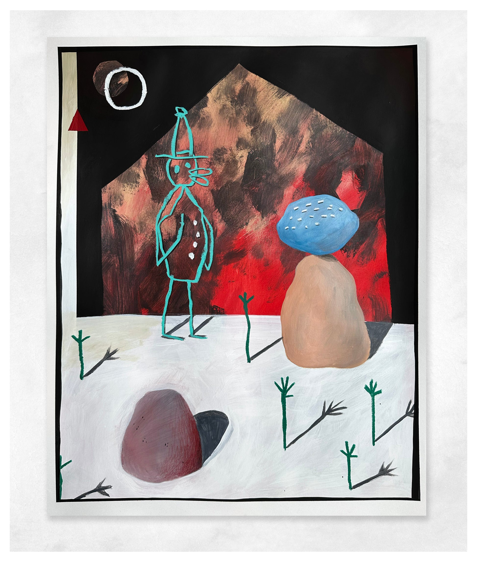 Acrylic, pencil, oil pastel, wax pastel on 19x24" bristol board