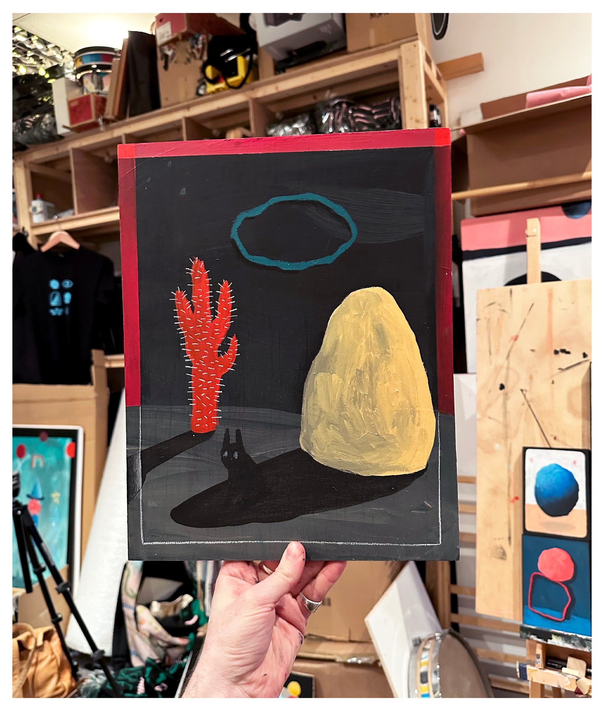 Acrylic, pencil, oil pastel, wax pastel